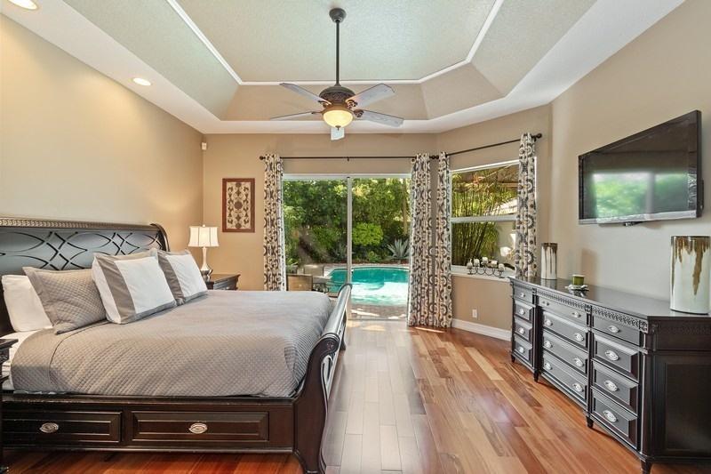 Welcome home to this immaculate 5 br, 3 ba property in the sought after Fox Ridge community of Parkland with split, open concept floorplan. The bright and airy family room and kitchen with 12 foot ceilings, open up toward the backyard. The kitchen boasts kitchen aid, Jennair appliances, beautiful granite counter tops and a large pantry. The master suite complete with two large walk-in closets and an elegant, custom bathroom overlooks the tranquil pool area. Perfectly kept porcelain tile and wood floors. The outdoor area is every homeowner's dream with a large, inviting pool, tropical lush landscaping and a covered patio area perfect for entertaining. 3 car garage, den and sep laundry complete the home. Walking distance to schools, parks, tennis and more.