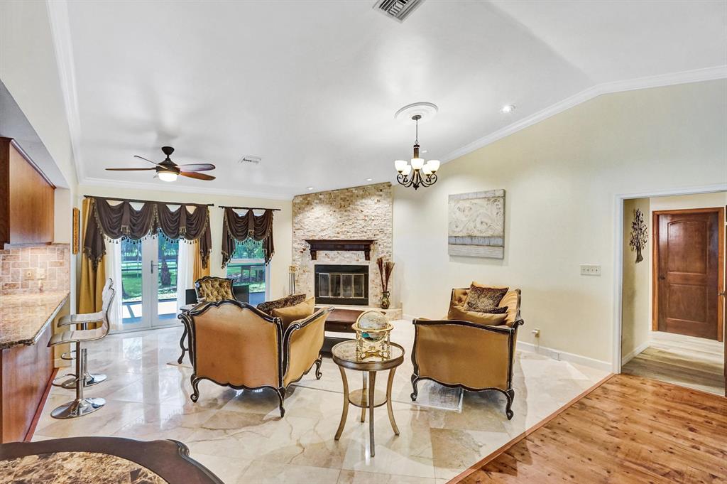Sprawling estate home on 1+ acre of beautifully landscaped and treed lot in prestigious Pine Tree Estates North. 2018 New Roof, 2016, All new Impact windows and doors, All new marble and wood floors, All updated full baths. Newer kitchen with stainless steel appliances, including built-in convection oven/microwave. Center Island with Induction cooktop. Wood kitchen cabinets with granite countertops. Family room with travertine marble, wood burning fireplace & vaulted ceilings. Newer dual AC units. Huge screened in patio for entertaining. And lots of room to build your own pool. Excellent schools & fast access to Sawgrass Expressway. Sq ft under air higher than tax records based on appraisal