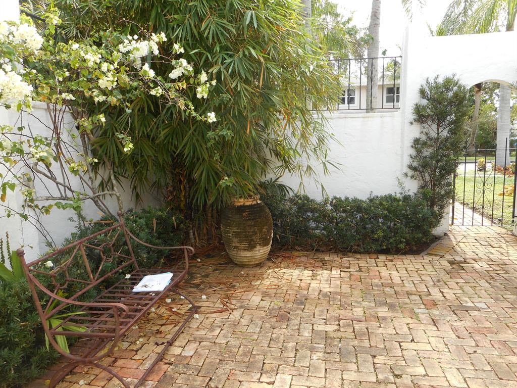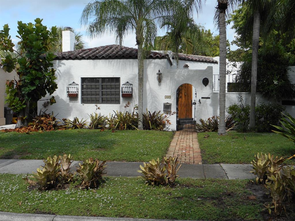 One of Hansell Hall's (preeminent builder in Flamingo Park) many homes (and one of his three walled courtyard style). Hollow tile construction with new roofs on flat section of main house and rear cottage. Chicago brick drive, pathways and courtyard. Wooden pergola at rear for wonderful entertaining/relaxing. All the charming features: fireplace, oak floors with border pattern, wooden doors not painted (!). Rear cottage rebuilt for your guests. Large living and dining rooms, charming triangular entry foyer and master with en suite bath.