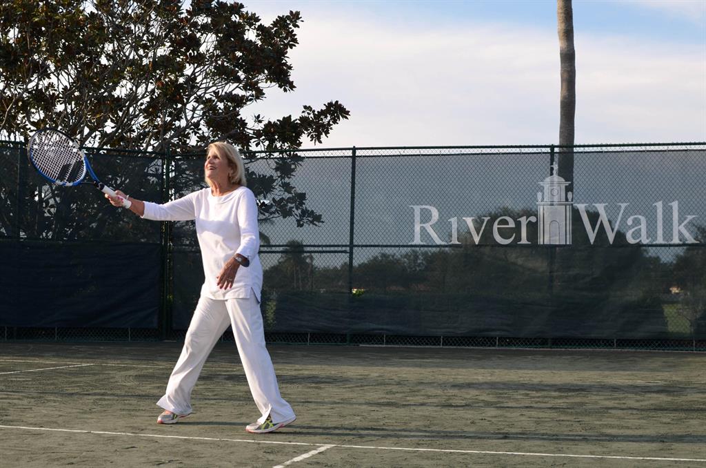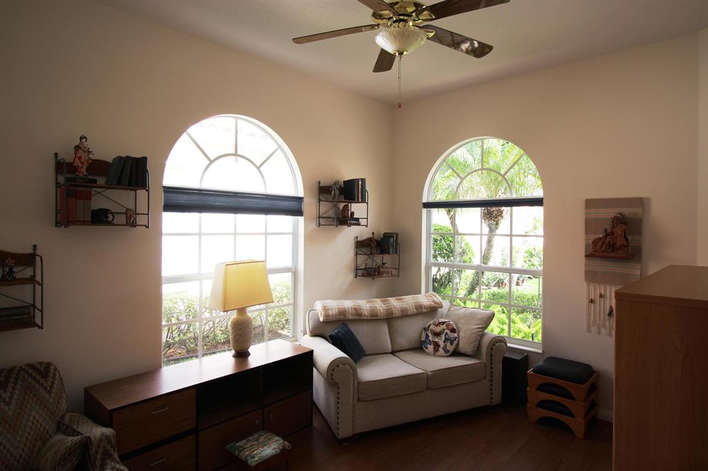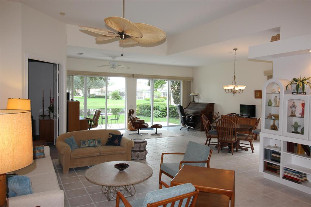 Amazing sunsets from this pristine ''Expanded'' Oakmont model!Situated near the cul del sac, this location offers not only easy access to the Town Center but stunning views of the lakes and bridges. 12 foot ceilings in the Great Room, a great open concept which allows many options for furniture placement. The kitchen is open to the dining area but private from the Great Room living space - perfect for entertaining! The main living area is tiled, laminate in the den, carpet in the bedrooms. The AC has been updated as well as refrigerator, dishwasher and microwave. The master bedroom boasts a unique double bathroom set up - shower, sink and commode on one side and Roman tub (with whirlpool) sink and commode on the other! The two guest bedrooms are separate from the master and share