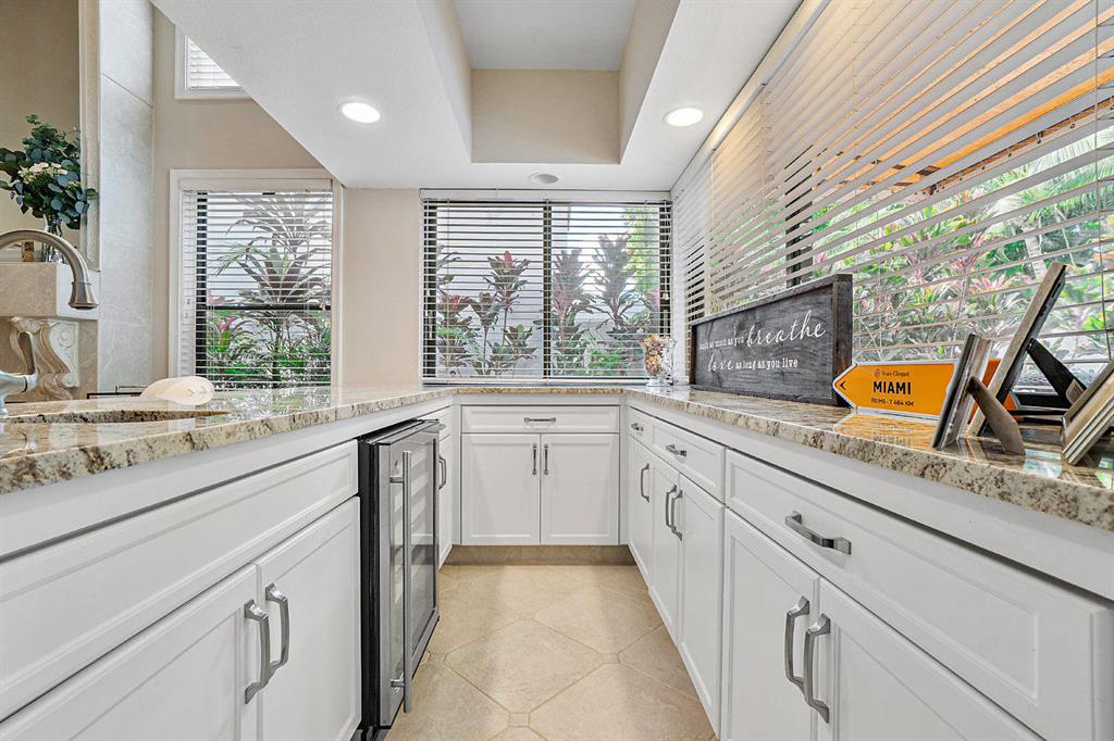 Arguably the most stunning residence to ever come to market in the very desirable community of Town Place Club Villas. Upscale and convenient living in the heart of Boca Raton! This affluent gated community is nestled in a secluded spot across the street from the Town Center at Boca Raton Mall. The villas offer privacy in a secure location adjacent to the Swim and Racquet Club on the prestigious St. Andrews Boulevard with 24-hour manned entrance and yet you're within a few minutes to all the best shopping, restaurants, bars, art galleries, museums, and everything that Boca Raton has to offer. Completely updated gourmet-style kitchen with granite countertops, newer cabinets, breakfast bar, wine cooler, wet bar and stainless steel appliances.