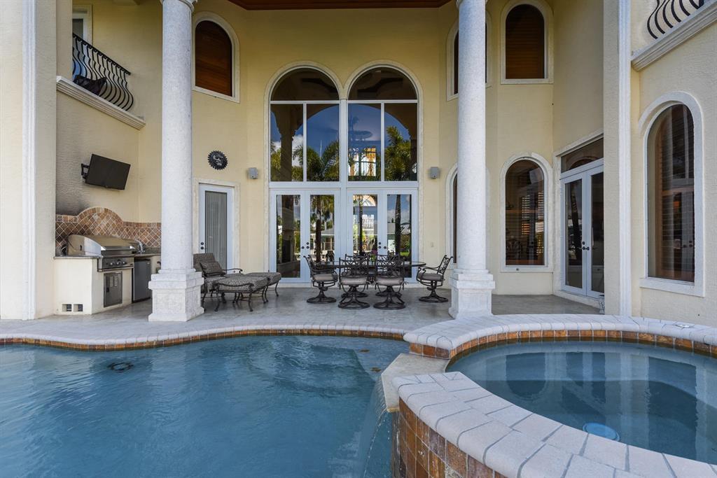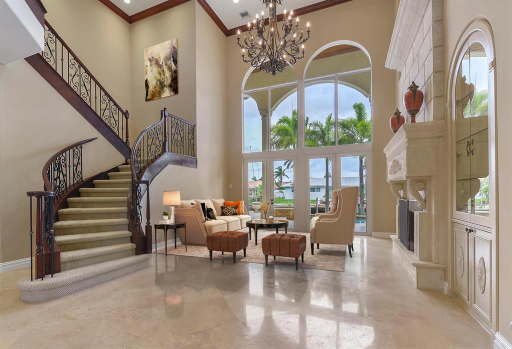 MOTIVATED SELLER!!!! Now Vacant! Ready to move -in and easy to show! An ideal home for entertaining and welcoming friends and family. Beautiful estate home in pristine condition with dockage and direct access to the Intracoastal waterway. Fine architectural details including crown moldings, marble floors, stone fireplace, medallions, inlays and built-ins. Top of the line appliances make the 5-star kitchen a chef's delight. Brand new washer and dryer. Grand winding staircase with wrought iron balustrade leads to the private media theater with bar parlor entry. Upstairs master suite balcony overlooking the canal has his and hers baths plus fully outfitted closets. Wood paneled elevator. Impact glass throughout.