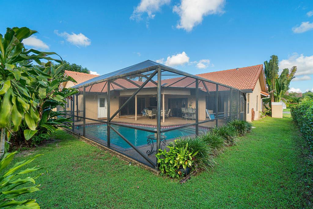 Escape to the Estates of Boca Lyons, a VERY LOW HOA family neighborhood in the heart of Boca Raton! Zoned for all A+ schools. Located minutes from all the best that Boca has to offer including beautiful beaches, shopping and dining featuring Mizner Park and Town Center Mall, public parks, places of worship, and major highways making commuting convenient. This charming 4 bed, 3 bath home comfortably accommodates family and friends, with a split floorplan to ensure privacy. The covered pool and patio is the epitome of living in South Florida! Generous 30' x 15' pool plus sundeck, with plenty of covered space for outdoor seating and dining. Behind the picture-perfect hurricane impact front doors is a soaring space with gleaming ceramic tile and vaulted ceilings. See supplement remarks.