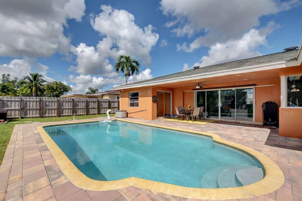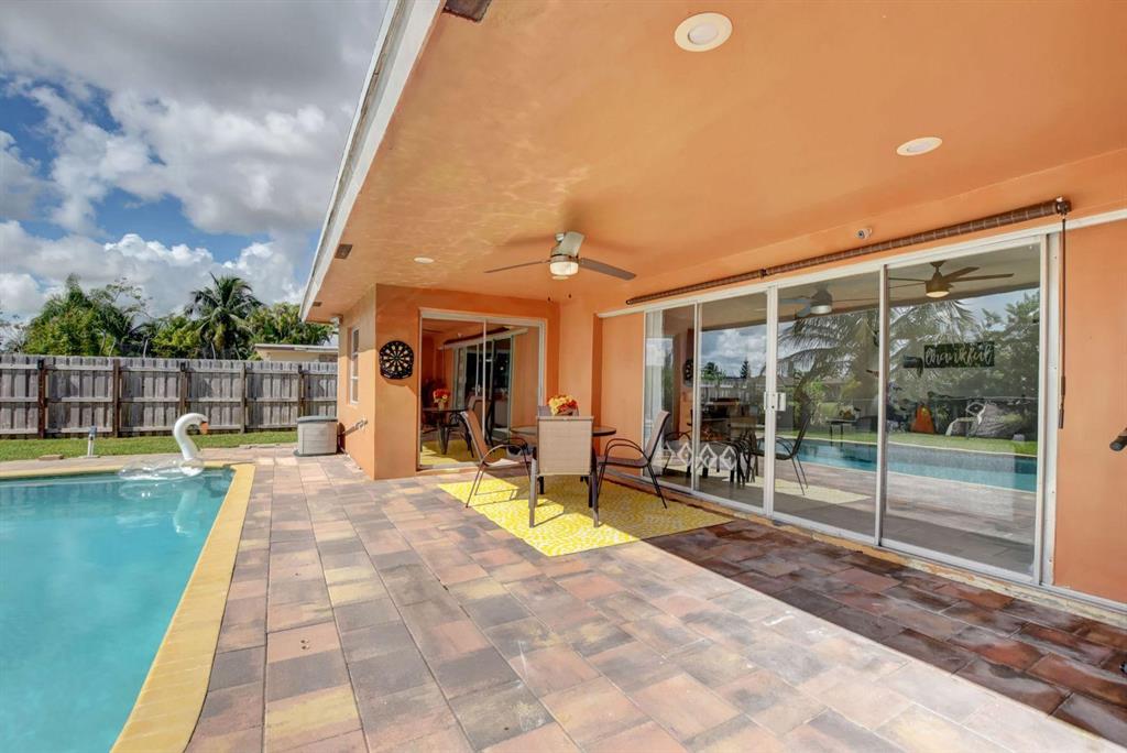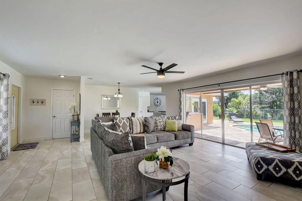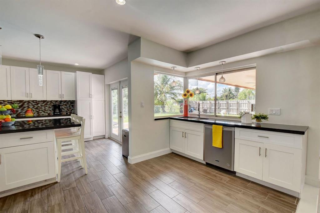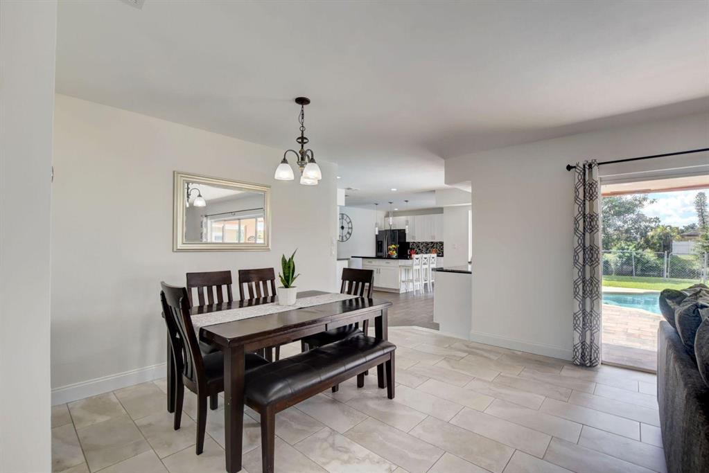 4 Bedroom/2 Bath/Pool & Waterfront Home (4TH bedroom in the garage)!!! Massive updates throughout!! Largest updated kitchen in Palmetto Pines w/high end wood cabinets, glass tile back splash, granite countertops & an impressive island! This home is very open & very bright! Packet doors facilitating the access from the living room to the pool area and the large fenced in yard w/ covered area. Easy access to the lake and the fruit trees around it (Bananas and loquat). Tile floor in living area and kitchen and laminate floor in bedrooms. The 4th bedroom built in the garage can easily be used as an office area or converted back into a full-size garage. New Dishwasher - 1 year oldNew double oven, convection stove - 9 months oldNew washer and drier - 6 months oldNew AC - 1 year old/purch