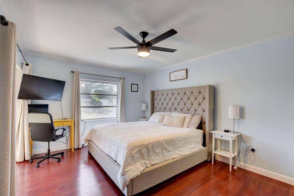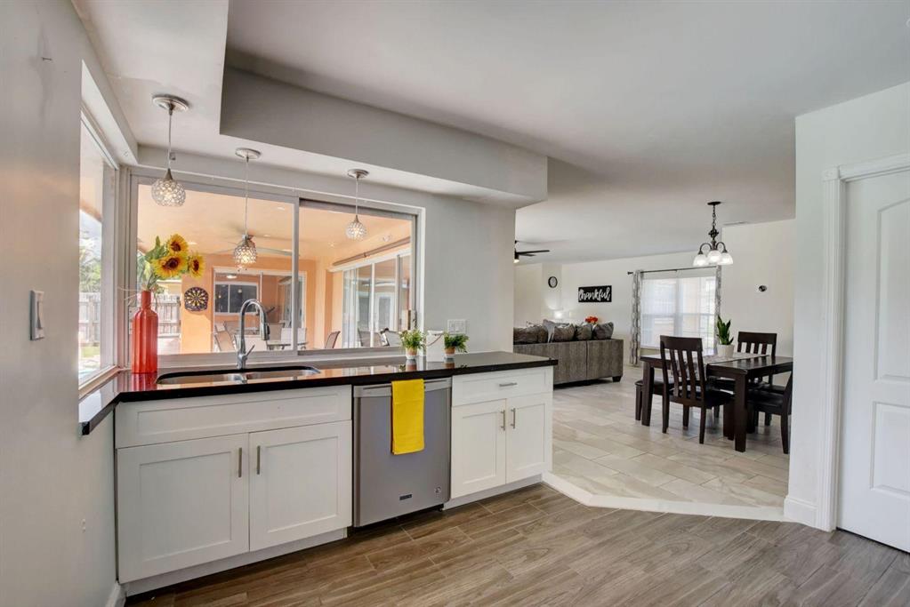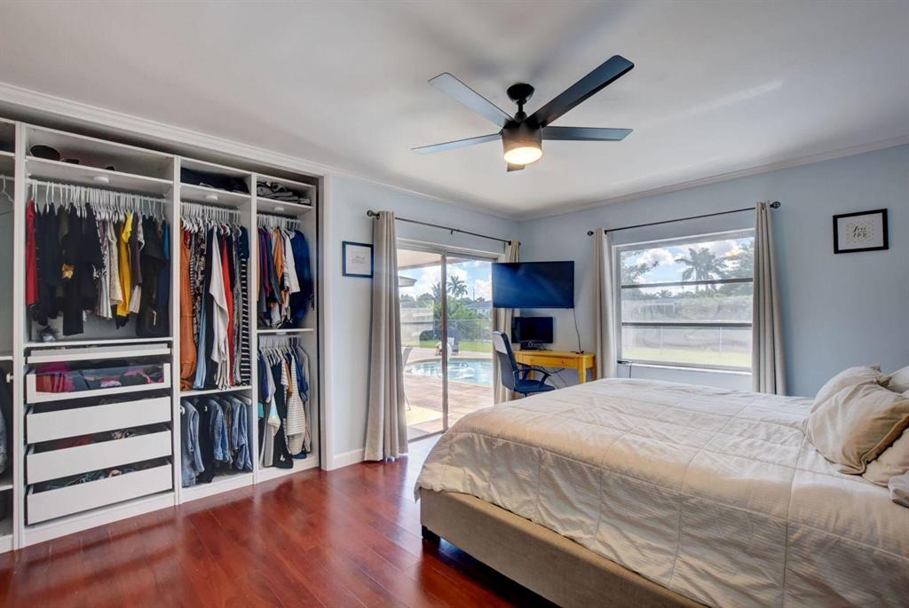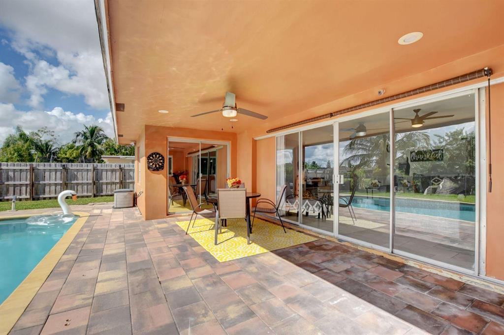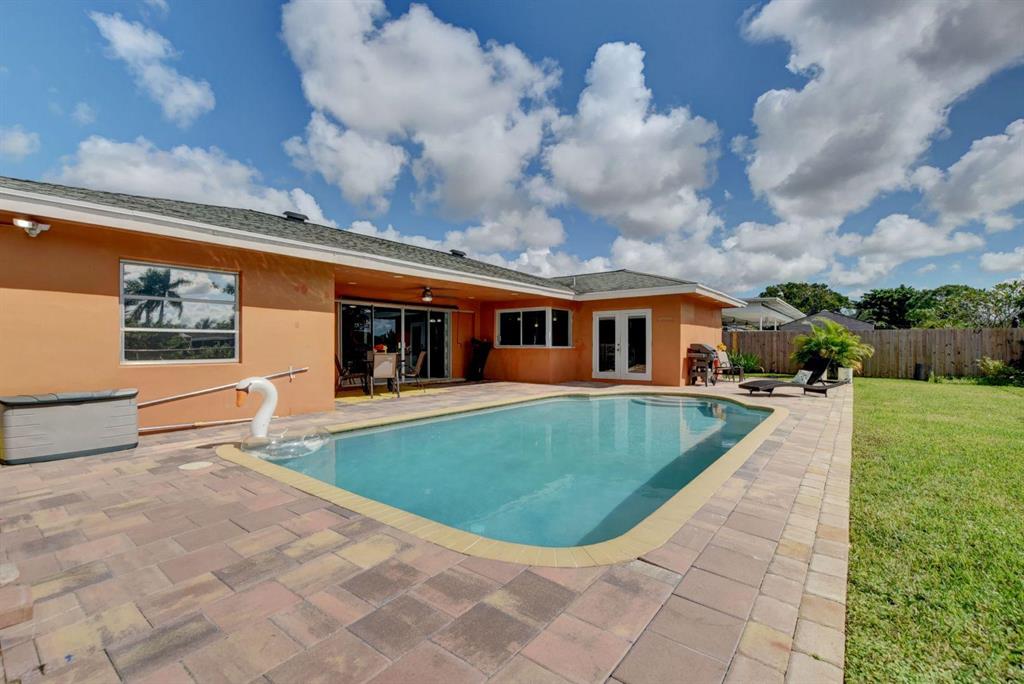4 Bedroom/2 Bath/Pool & Waterfront Home (4TH bedroom in the garage)!!! Massive updates throughout!! Largest updated kitchen in Palmetto Pines w/high end wood cabinets, glass tile back splash, granite countertops & an impressive island! This home is very open & very bright! Packet doors facilitating the access from the living room to the pool area and the large fenced in yard w/ covered area. Easy access to the lake and the fruit trees around it (Bananas and loquat). Tile floor in living area and kitchen and laminate floor in bedrooms. The 4th bedroom built in the garage can easily be used as an office area or converted back into a full-size garage. New Dishwasher - 1 year oldNew double oven, convection stove - 9 months oldNew washer and drier - 6 months oldNew AC - 1 year old/purch