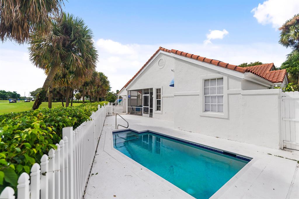 Low-maintenance living in a highly-desired neighborhood at an affordable price! Estate Sale, the home is sold as-is, see home inspection attached. HOA covers insurance, roof maintenance, landscaping, front lawn maintenance, exterior painting, basic cable and 24 hour manned gate entry. Roof was replaced appx 2010 and AC in 2016. Interior freshly painted 10/2019.One of the three bedrooms is currently set up to be an office and can easily be converted back to a bedroom. Ceramic tile flooring throughout. Floorplan is perfect for entertaining! You and your guests will have ample room to spread out around the pool and in the screened in patio, all overlooking the 10th hole of the beautiful Boca Golf Course. This is a non-mandatory membership community.