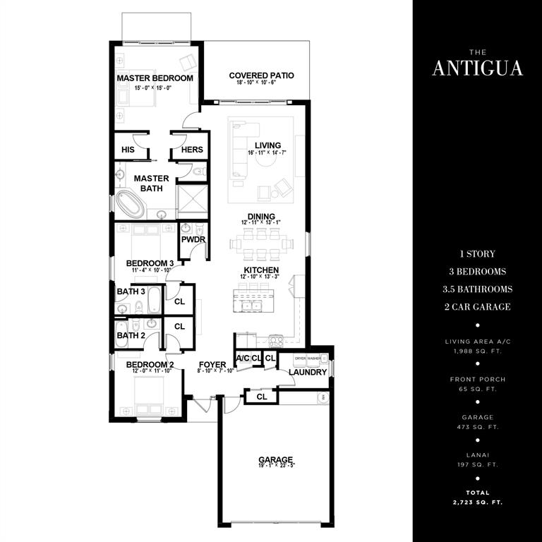 The ANTIGUA Floorplan - Classic Elevation, Lot 80 is an exquisitely designed 1-story home featuring 3 bedroom, 3.5 baths with 1,988 interior SF and 2,733 total SF. It is a waterfront lot with 2-car. This home includes an upgraded Kitchen appliance package, tray ceilings and recessed lighting, summer kitchen rough-in along with upgraded porcelain tile . This home is energy efficient and includes a energy efficient 50-gallon hot water heater and high efficiency 5.0 GE top load washer & dryer. Available for Move-In March 2020.