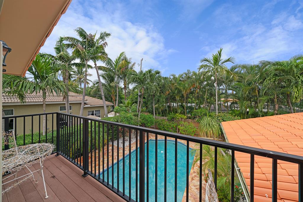 Spacious Coral Ridge 4BR/3BA pool home with open floor plan tucked away in tropical landscaping. A great home for entertaining with custom built bar with abundant shelving centrally located in the home and adjacent to living area that opens to pool. 4th bedroom upstairs is more like a suite with a large living area, bedroom and bath with balcony overlooking pool. Fantastic backyard providing complete privacy along with multiple areas to enjoy the outdoors all fully pavered and landscaped! Plenty of parking with oversized and circular driveway along with 2 car garage. Very well maintained home with long time owner.