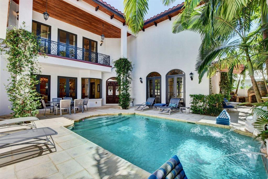 Beautiful CBS Mediterranean Custom Build with recent endless designer's renovation touch. 5 Bedrooms + 4 Baths with nice layout, attached 3 Car Garage w/Chicago Brick Driveway, large laundry room, lots of storage, Impact Glass, Eat-in Chef's Kitchen w/new stainless-steel appliances; Thermador Double Oven Gas Convection Range, Wine Fridge, Sub-Zero Refrigerator, Bosch DW, Pantry and large dining area. Open living room offers stunning volume wood beam ceilings, wrought iron staircase and light fixtures plus gas fire place. One of a kind courtyard home that offers privacy where rooms faces the saline heated pool and courtyard plus bedrooms views from terrace and balconies. Separate in-law guest suite w/private entrance w/walk-in closet and Cabana Bath.