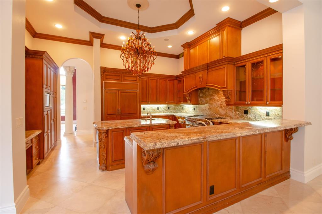 Spectacular Mediterranean compound in the prestigious estates section of the Oaks at Boca Raton. Recently renovated and shows like a model. This private estate is situated on over half an acre. Features four bedrooms, five bathrooms, and comprised of over 7,000 total square feet. This magnificent estate offers an array of amenities including one of the largest private lots in the community, an oversized four car garage, and a resort-style saltwater swimming pool & spa. Beyond the circular driveway, double doors open to the grand foyer leading into the estate's magnificent living room with volume ceilings' and fireplace. Private formal dining room and open family room are primed for entertaining. The chef's-kitchen boasts professional top-of-the-line Wolf appliances.