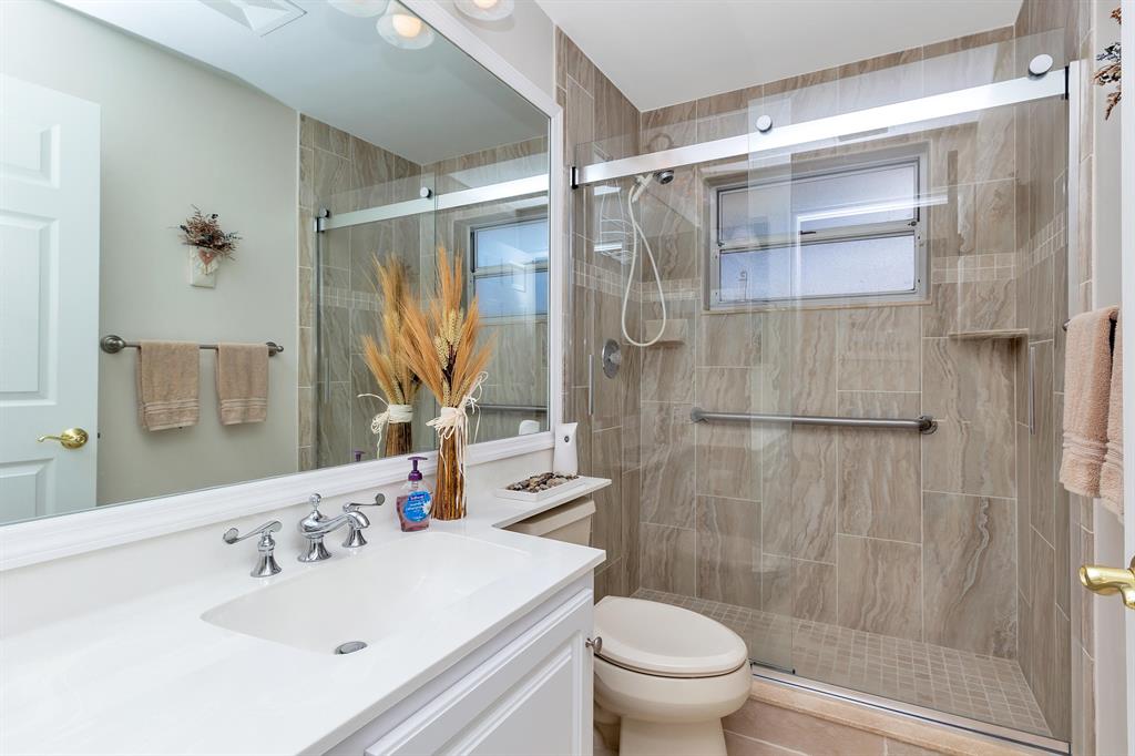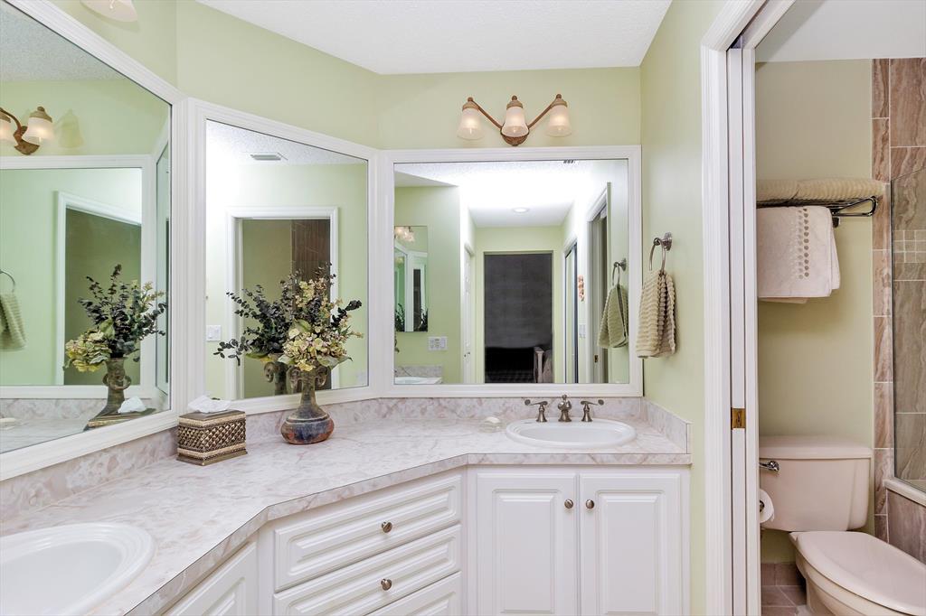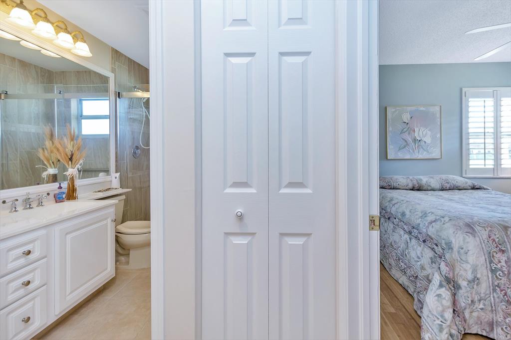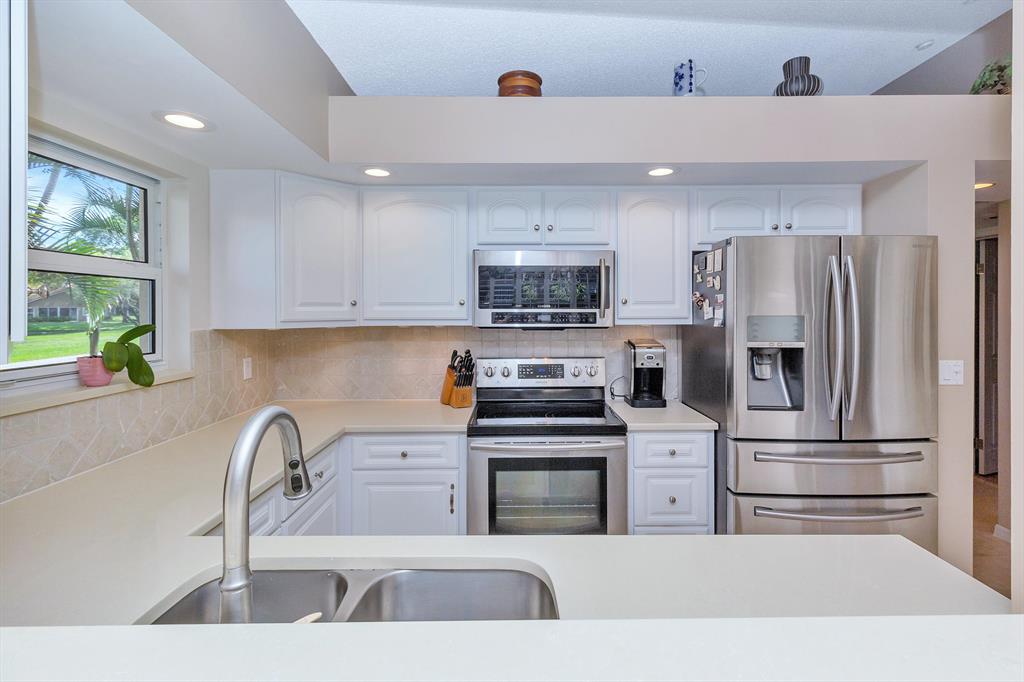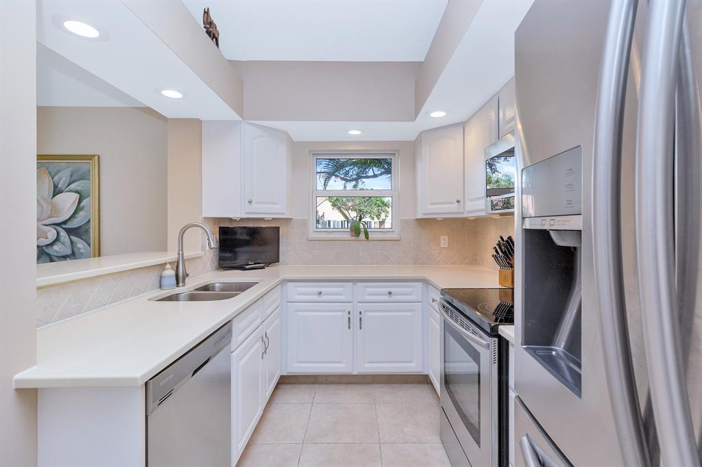 PRICE REDUCTION REFLECTS RECENT APPRAISAL!!! MOVE IN CONDITION; Quality workmanship in Immaculate, bright & beautiful, completely remodeled Villa (no stairs); end unit 2BR/2BA + Bonus room; water view; cathedral ceilings; open floor plan; plantation shutters; custom cabinets in kitchen & throughout w/full-extending drawers; new quartz counter; Samsung s/s appliances; LED lighting; LG w/d; New custom baths and flooring are Italian porcelain tile; bedroom flooring 3/4'' solid bamboo (no carpet); cathedral ceilings add spacious atmosphere; full hurricane package; custom entertainment center in L/R; lots of storage and closets; fully insulated attic=energy saving; many mechanical upgrades;