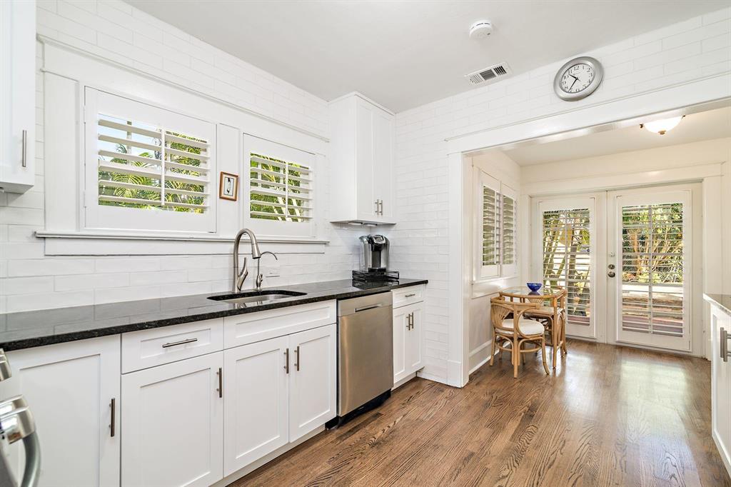 Sparkling Grandview Heights Residence. This freshly designed & improved 2BR/2BTH home is spacious & charming. Hedged & gated front yard has new landscaping & a beautiful tiled walkway. The entrance study starts the theme of gleaming hardwood floors throughout this inspired space. Turning into the living room with light flowing from large windows with plantation shutters enhancing the fireplace & mantel, continuing to the large & airy dining room, then following into the new kitchen. Custom white cabinets, sparkling tile backsplash, tiled wall, granite countertops & new stainless. steel appliances. French doors open to the spacious & private yard with large deck & pool. Brand new roof! Private guest cottage with full bath & kitchenette. So many surprises will surprise & delight any buyer.