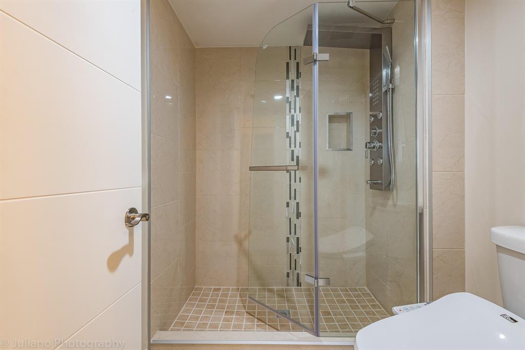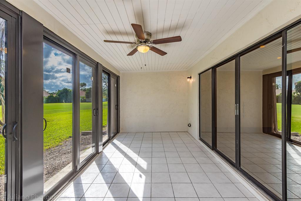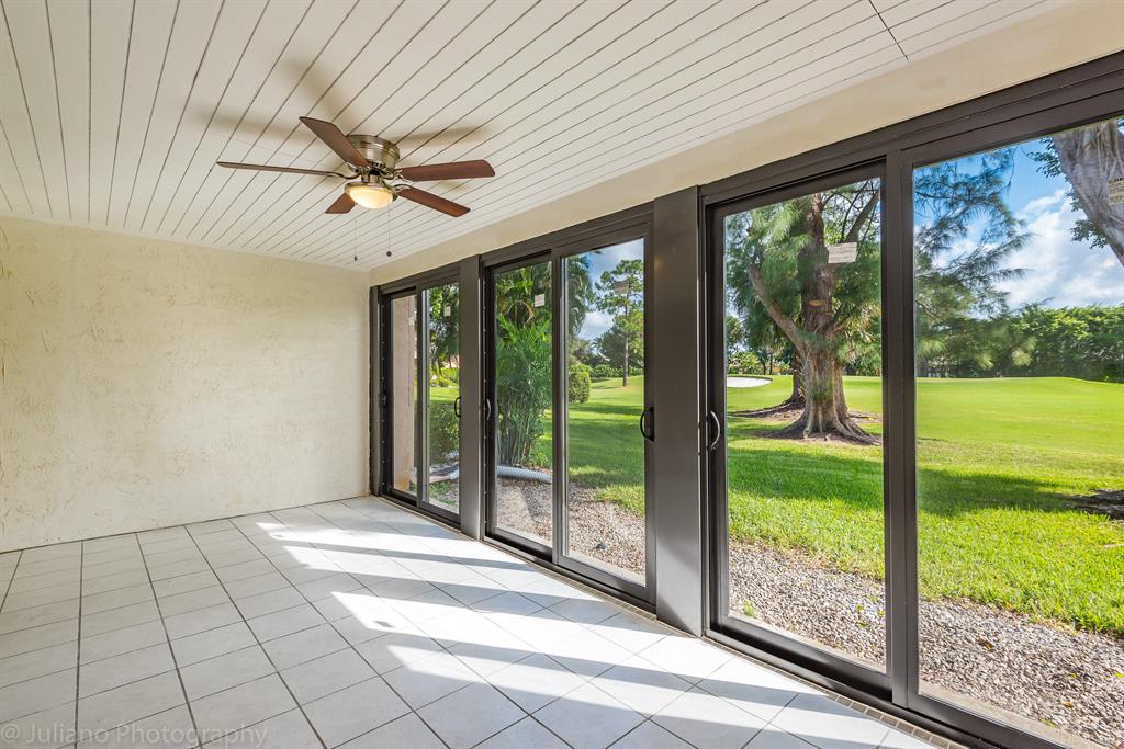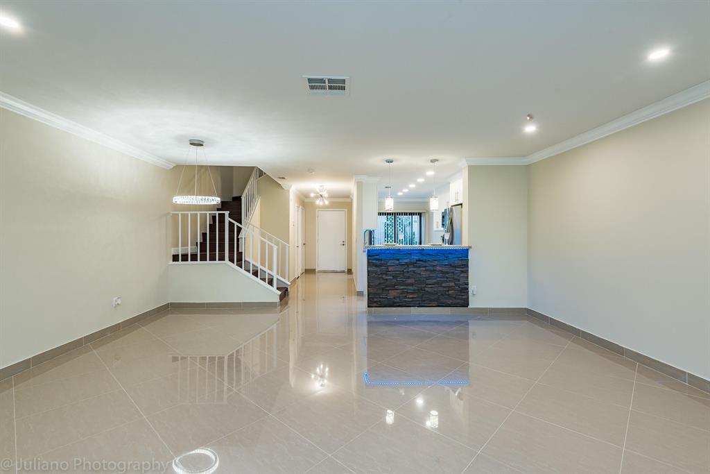 Rarely available Townhouse overlooking the golf course & fully renovated & upgraded. The only townhouse in the development with IMPACT GLASS WINDOWS AND SLIDING DOORS, separate laundry room and storage. 24''x24'' porcelain tiles on the ground floor and 12-mm high quality laminate upstairs. NO POPCORN. Modern bathrooms with spray jets and handheld, European style frameless shower doors, new vents and recessed lights, master toilet with cold/hot water bidet seat system. Modern vanities with waterfall faucets. A lot of closets. The staircase is illuminated by motion sensors. White wood cabinets kitchen with granite countertop and SS appliances, lights under the kitchen wall cabinets and under the bar. Living room with new recessed lights and modern expensive chandelier.