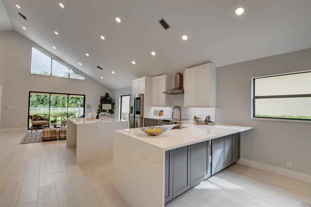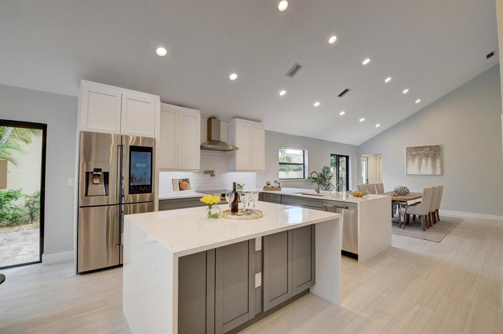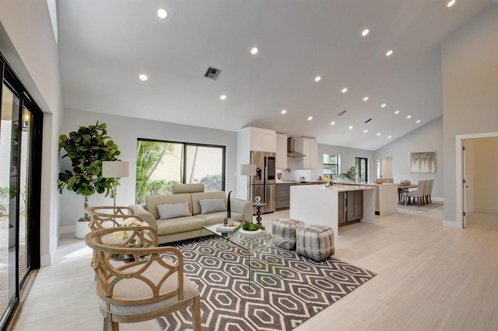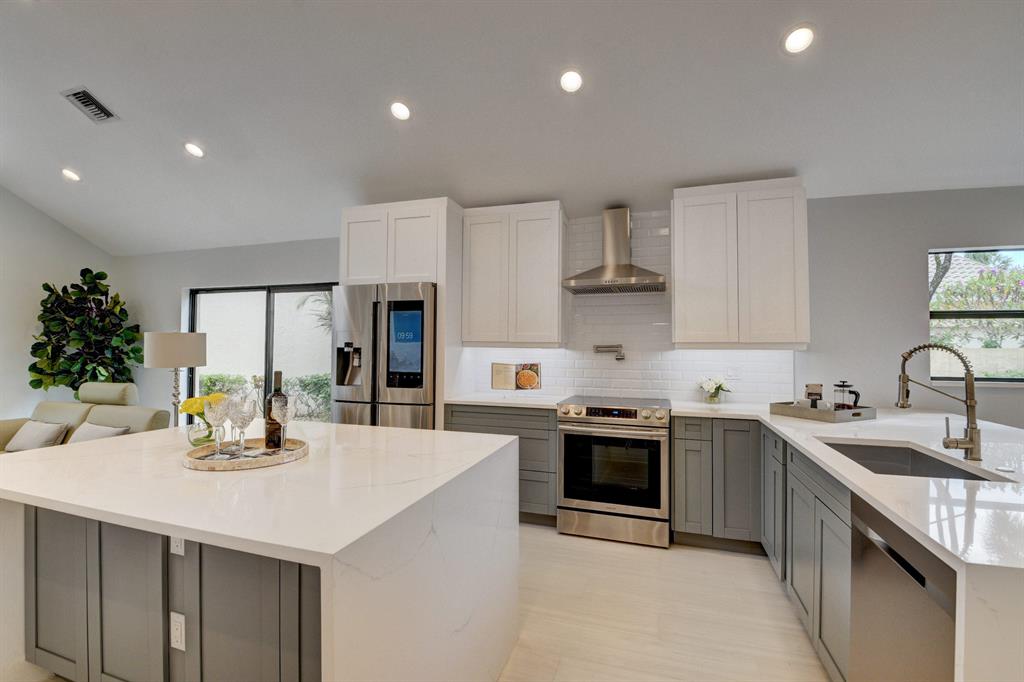 Completely renovated one story home with 3 bedrooms, 2.5 baths, and a 2 car garage located in the Ville de Capri subdivision of The Polo Club of Boca Raton. This stunning home boasts an open floor plan with vaulted ceilings, luxurious kitchen with Samsung Smart Refrigerator, plentiful built-in storage and pantry. Italian tile flooring throughout. All new fixtures and state of the art showers. New a/c in 2018. Complete with incredible Technology & Accessory Package which includes a fully integrated AI Smart TV, LED lighting throughout, a Nest Thermostat and Nest Video doorbell, ''smart garage''. Custom Polyaspartic garage flooring. Easy walk to the club house. Mandatory membership required.