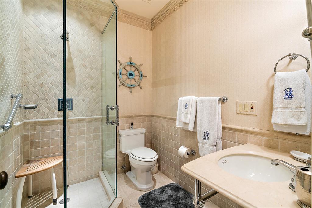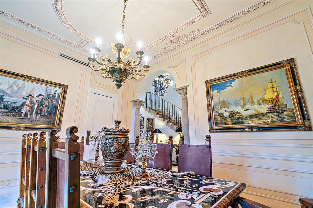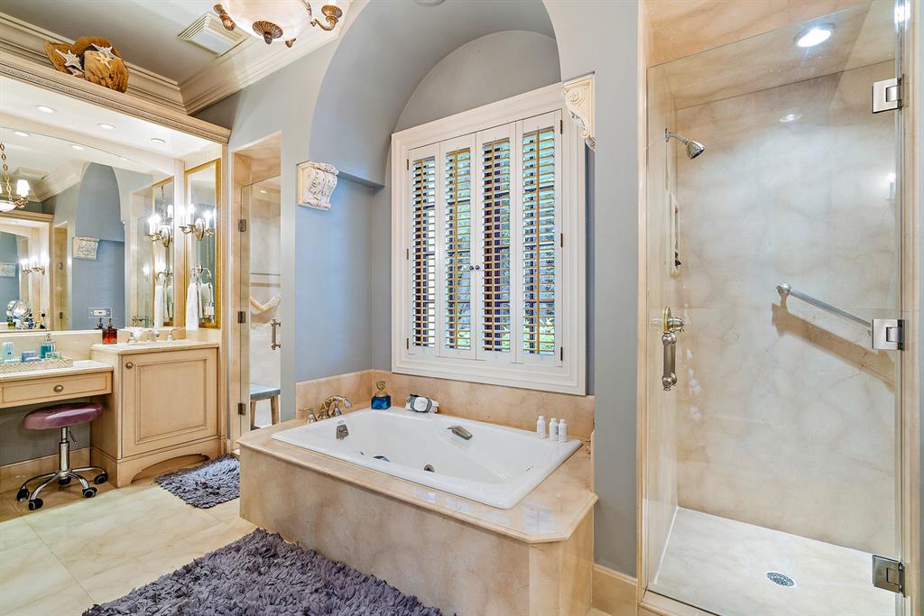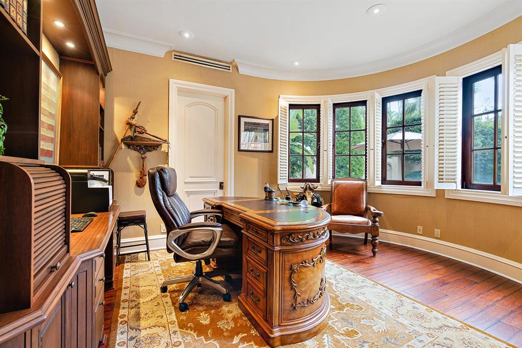 In-town, quiet and serene Ocean block European villa with 8,491 TSF on almost a half-acre. French doors throughout open to loggias and garden areas, it is a casually elegant entertaining home with formal rooms and intimate spaces. In a split floorplan there is a 1st floor master suite, library, formal LR & DR and a gourmet kitchen & breakfast room, family room, office w/full bath. The second level features a 2nd family room, 4 BR/4Ba, gym w/sauna & laundry. Direct beach access is through membership in the Sea Streets Association. 3-Car air-conditioned garage is accessed via private rear laneway, all impact doors/windows, hidden speaker sound system in each principal room. Nicely elevated site on nearly a 21,000 SF parcel.