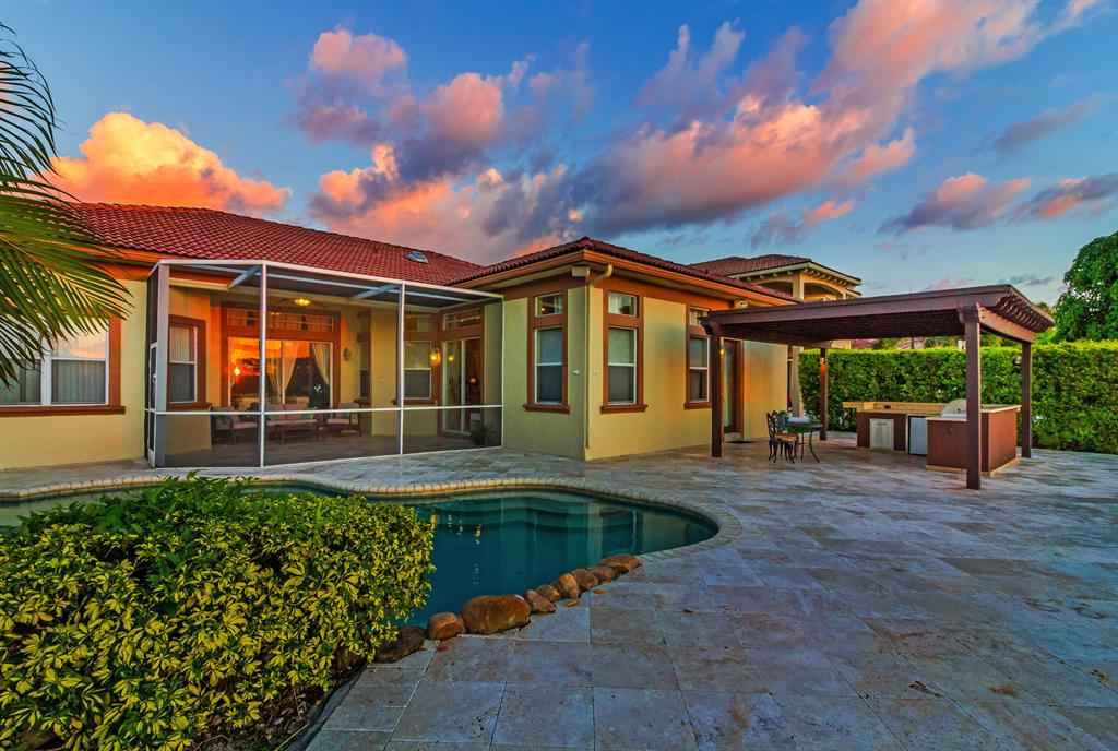 From the moment you walk thru the double doors you are struck by this spacious & well-designed home. Located in the desirable community of Bay Pointe at Wyndham Lakes, this is a true 5-bedroom 3 bath triple split floor plan. Master bedroom features amazing master bath, large walk in closets & sitting area. Remodeled kitchen w/granite & stainless-steel appliances, gorgeous full wet bar in living room, formal dining room, dramatic tray ceilings, & designer touches such as 36 x 36 porcelain tile throughput the living area. This home is situated on one of the largest lakes w/magnificent radiant sunsets. Outdoor features include outdoor kitchen w/granite, a pergola, as well as a screened covered patio. Free form pool & beautiful landscaping with designer lighting round out this beautiful home.