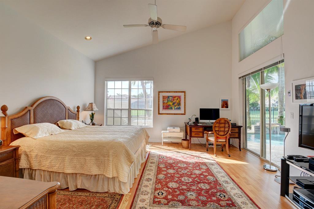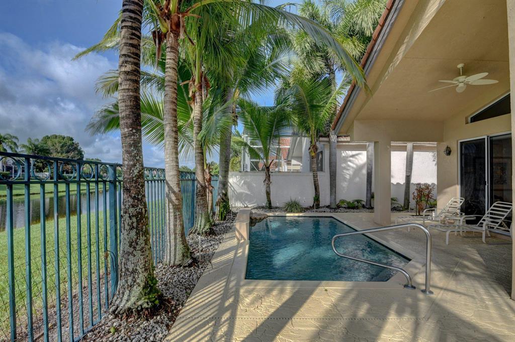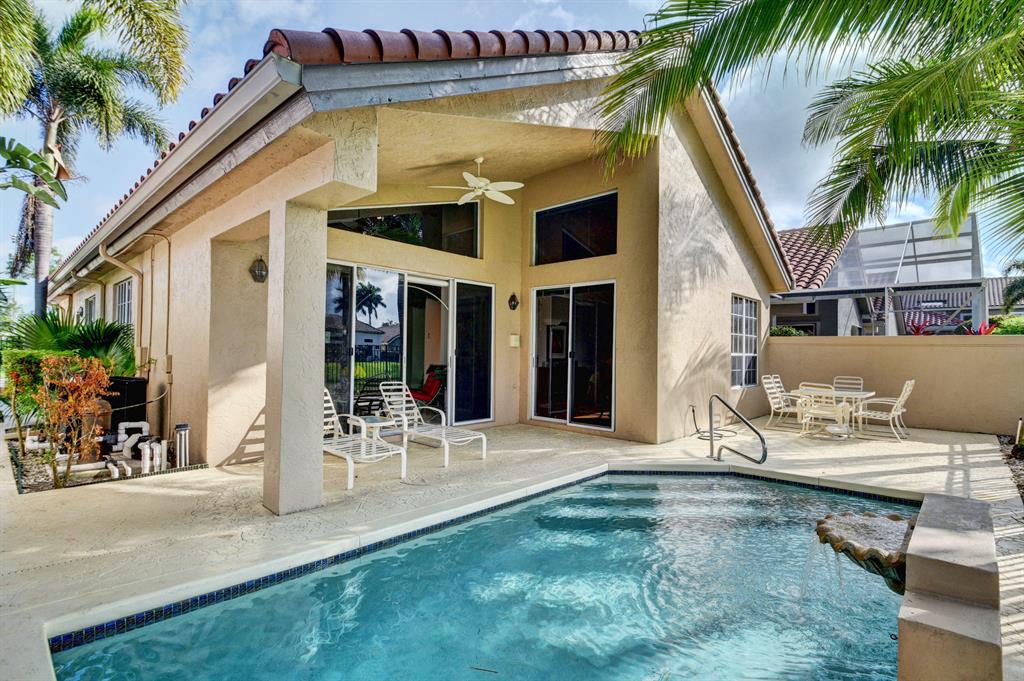 Beautiful 3 bedroom/3 bath one story pool home in sought after Santa Barbara community. Large great room with high ceilings and windows, overlooks tropically lush heated pool and lake. Renovated kitchen with granite countertops and newer stainless steel appliances, opens to the spacious and bright living area. Three way split bedroom floorplan is perfect for families and guests, with two generous bedrooms and a master bedroom overlooking the lake and pool area. This rarely used home is in move in condition with a new roof, air conditioner, and hurricane garage door. Home was also freshly painted. Santa Barbara has a clubhouse with pool, tennis and fitness. Ideally located in central Boca Raton in an excellent school district, and close to dining, shopping and entertainment.