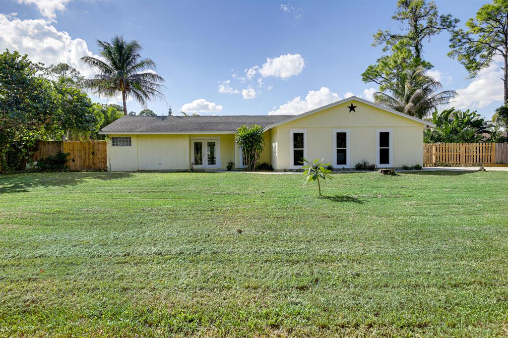 Spacious split floor plan home on 1.25 acres in the suburban West Palm Beach Acreage development. Impeccably maintained and upgraded with new owner suite featuring elegant wood look tiled floors and modern owner bath featuring large glass enclosed shower and artful tile work. Engineered wood flooring covers the main living area that features an open floor plan design. The rear yard oasis offers with a free form pool & large entertainment space. The 2 car garage offers a hideaway air conditioned room used as an office, workshop or sleeping quarters. NO HOA for those who are free spirited. On site shipping container for storage or convert to a guest house! This country gem is in a perfect location for easy travel to shopping, dining, and going to town for diverse entertainment.