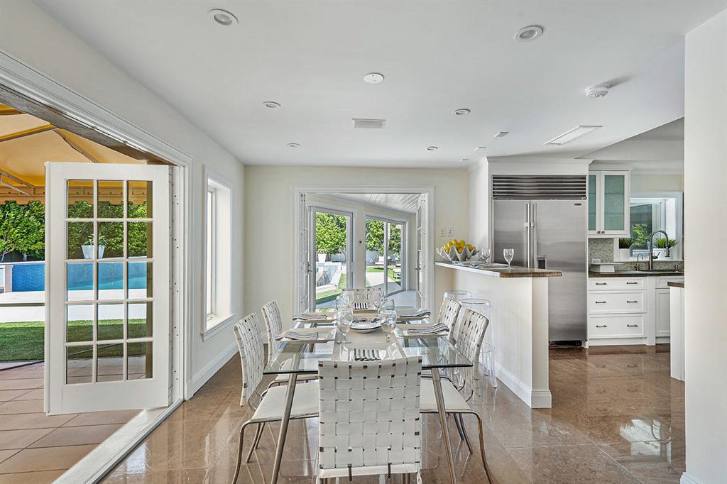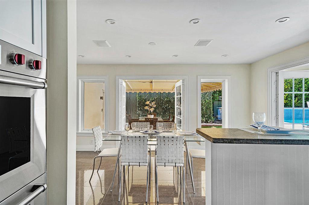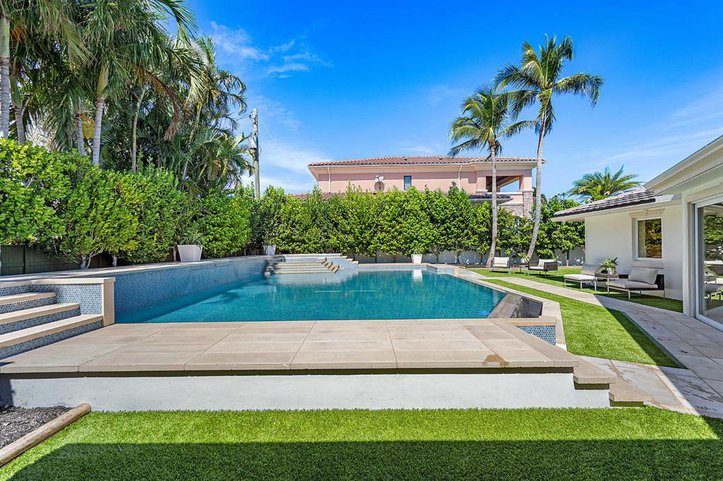 This South Flagler intracoastal boaters dream home with dock and double deep water lift is sited on a corner lot in the very desirable South End neighborhood. Carefully and meticulously redesigned, the single story waterfront split floor plan overlooks the wide open intracoastal and Palm Beach Estate homes. The design of this home allows for beautiful natural light throughout. Complete with deep water dock with two boat slips, air conditioned 2 car garage with Viking wine cooler, Sub Zero refrigerator, designer grade kitchen with new Wolf double ovens, 6 burner gas range with bbq, granite counters, custom cabinetry, and Sub Zero refrigerator and finally beautiful hardwood and marble flooring throughout. This home has it all!