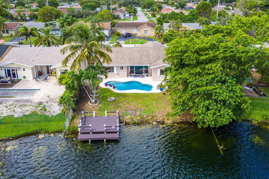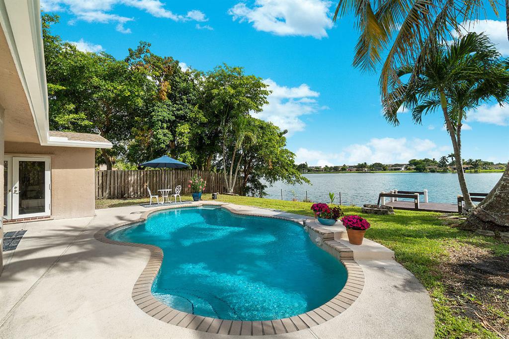 WATER, WATER EVERYWHERE! THE FIRST THING YOU NOTICE WHEN YOU STEP THROUGH THE FRONT DOOR OF THIS 4 BEDROOM, 2 BATH, 2 CAR GARAGE HOME IS THE STUNNING LAKE & BEAUTIFUL POOL VIEWS! THIS VERY OPEN CONCEPT FLOOR PLAN FEATURES HIGH CEILINGS & HAS TONS OF NATURAL LIGHT DUE TO THE MANY LARGE WINDOWS. NICELY UPDATED KITCHEN FEATURES GRANITE COUNTERTOPS, KITCHEN AID COOKTOP RANGE, S/S APPLIANCES & LOVELY CUSTOM WOOD CABINETRY! THE MASTER BEDROOM HAS LARGE HIS & HERS FITTED CLOSETS, UPDATED MASTER BATHROOM & GORGEOUS LAKE VIEWS. 4TH BEDROOM SET UP AS AN OFFICE (no closet) & HAS SOARING CEILINGS. FRESH PAINT & CROWN MOULDING. FENCED BACKYARD GREAT FOR PETS.RELAX ON THE DOCK & WATCH THE TROPICAL FLORIDA WILDLIFE, FISH OR LAY BY THE POOL TO CATCH RAYS...THIS IS THE PERFECT SOUTH FLORIDA LIFESTYLE!!