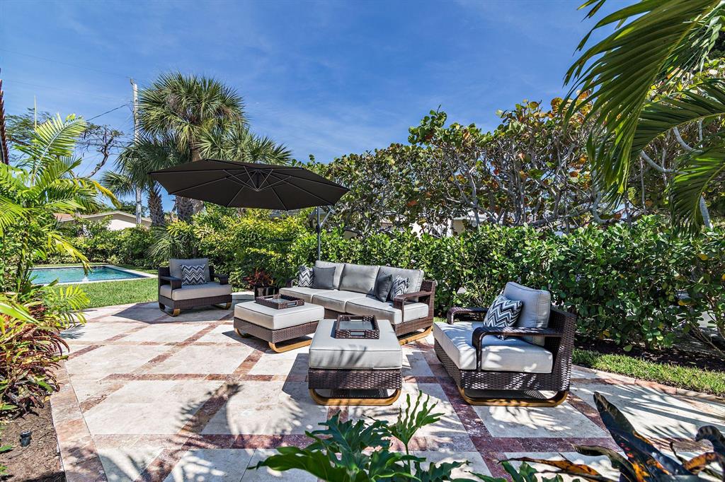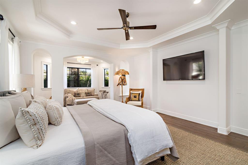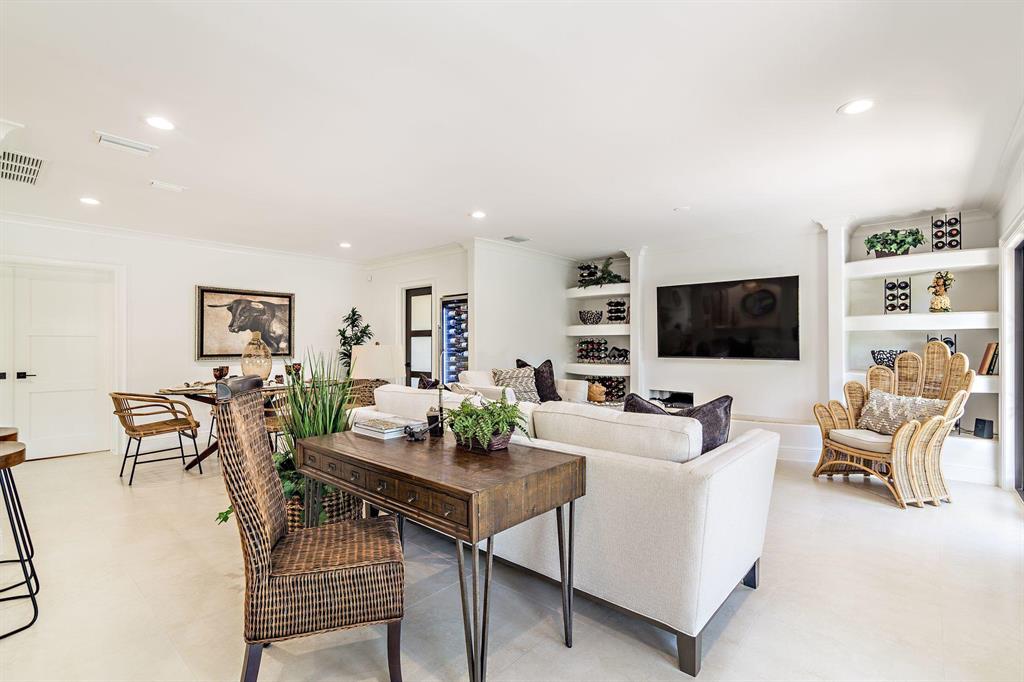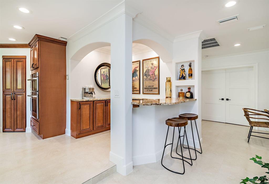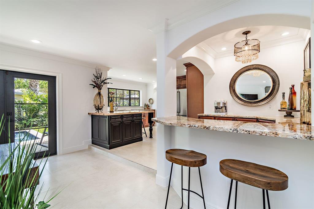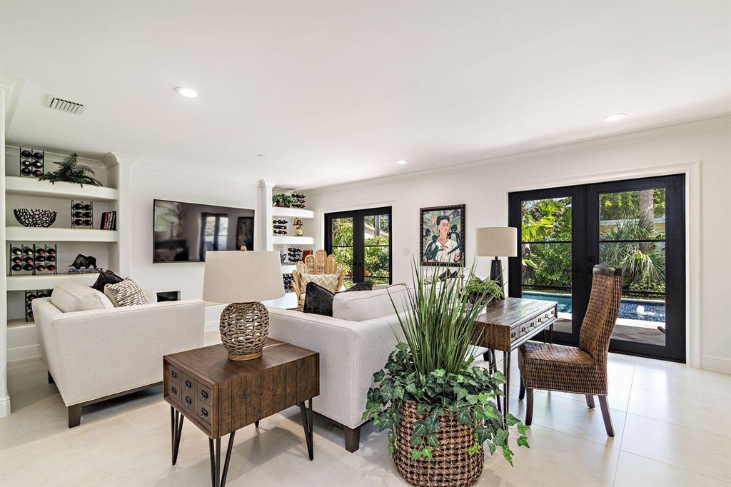 Enjoy the ease of one story living with this Southend beauty. Boasting over 3,500 sq ft featuring new impact windows and doors, new custom designed heated pool surrounded by lush tropical landscaping and private patios for relaxing and entertaining. Wrapped in windows and drenched in natural light, this Spanish inspired home offers 3 bedrooms and 3.5 bathrooms. The expansive master suite is unparalleled with sitting room and custom walk-in closets. The master bath with custom cabinetry and mirrors also features a Jacuzzi tub and spa rain shower. The newly renovated open concept floor plan has been enhanced with custom mill work by Brian Koenig Artistry. Additional features include an oversized garage with storage, all new kitchen appliances and a temperature controlled wine st