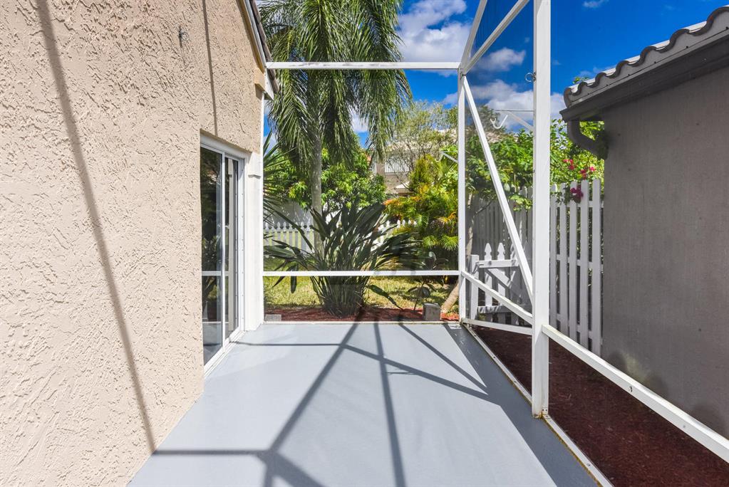 Bring Back up offers! Freshly painted inside and out. 3 bedroom, 2 baths cozy home. Lovely backyard garden, screened side patio. Granite counters in kitchen w/wood cabinets. Enclosed sun room with sliders out to the yard.Full hurricane protection. Low HOA includes Xfinity HD platform w/DVR and internet. Can have up to 2 pets, no aggressive breeds. Recreation center boasts new fitness center, heated olympic and kiddie pools. 2 playgrounds, soccer field, tennis, basketball. Picnic and BQ area. Manager on site with roaming security. Close to excellent shopping and schools, houses of worship. Minutes from tpke. 10 minutes to Boca Town Center and I95.