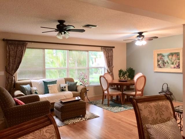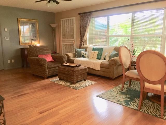 Spacious 2/2 town home, Extra feature finished enclosed porch, adding 299 living sq to this home! Wood floors, very open and bright unit. Big bedrooms, walk in closets. New A/C, laundry room with new washer and dryer.End unit. New windows, hurricane shutters. End unit. 2 parking spaces. Pet friendly association 2 pets up to 25 lbs. Easy application process.