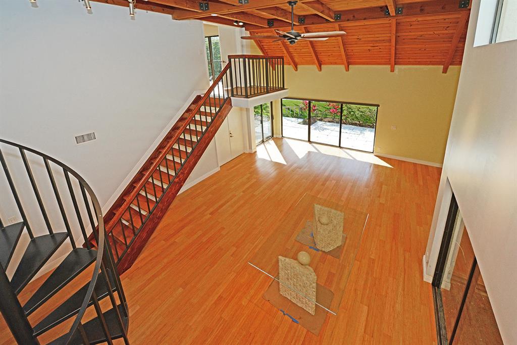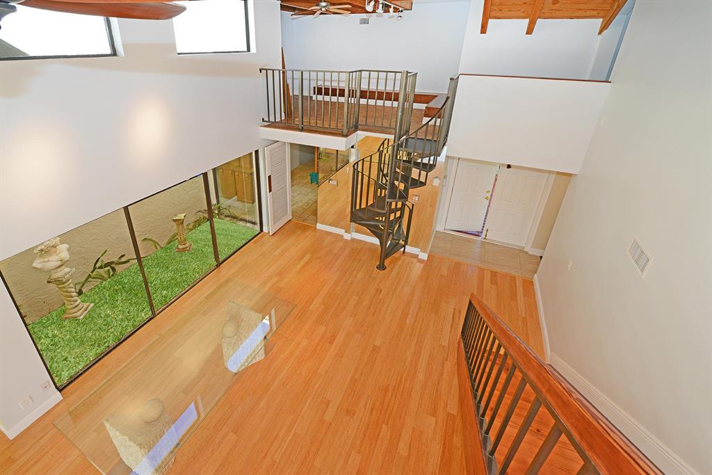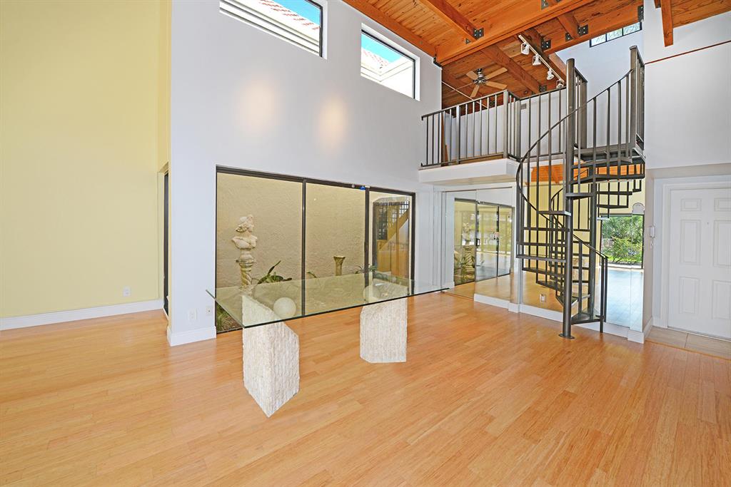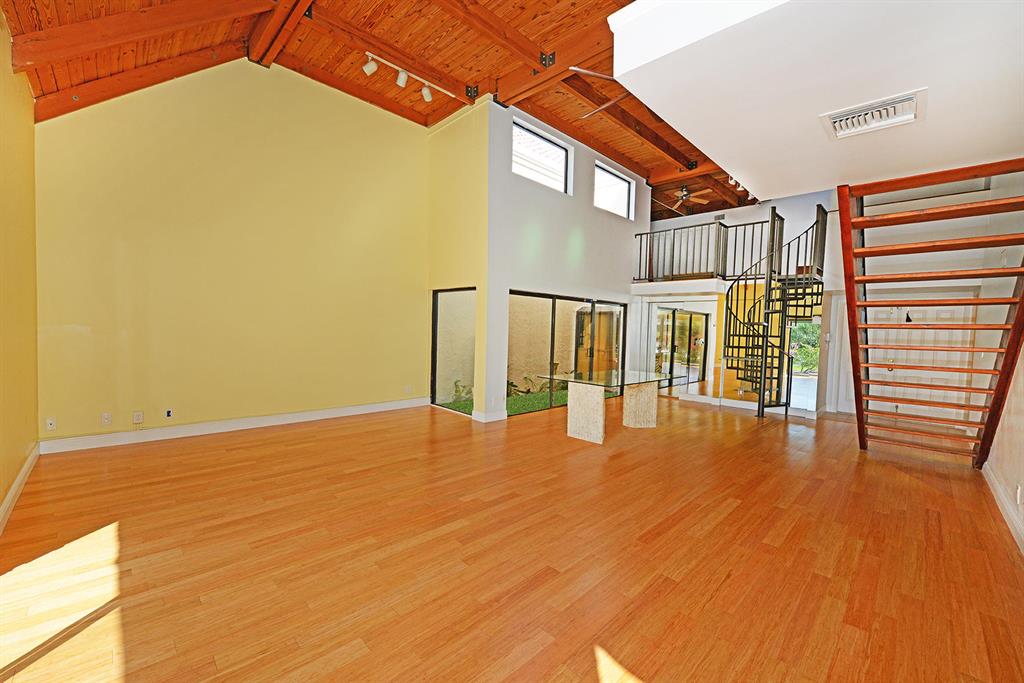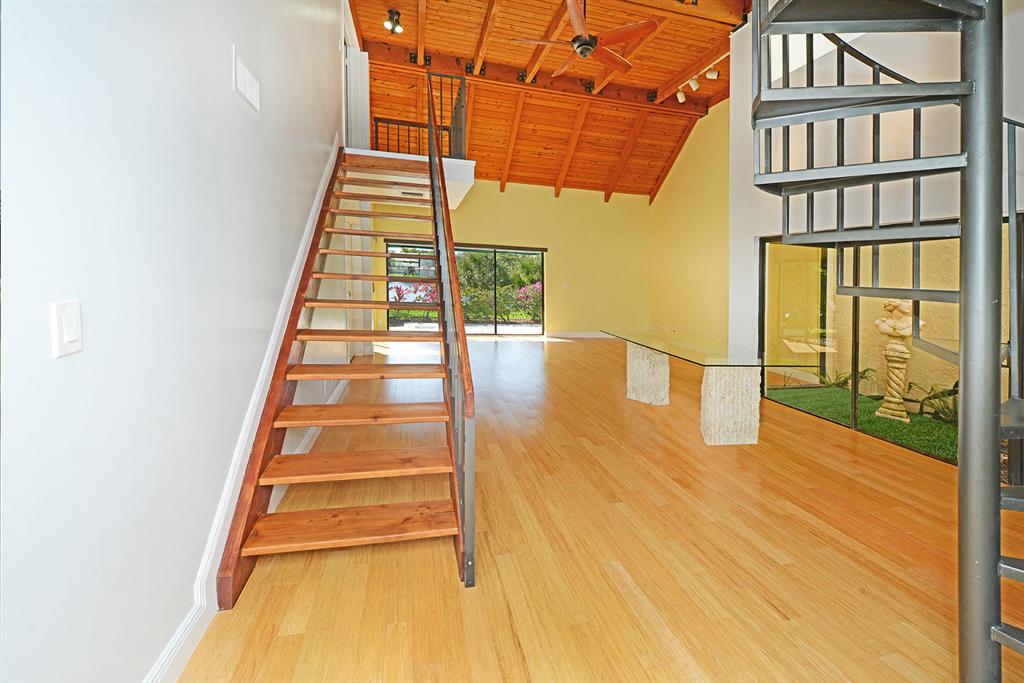 STUNNING WIDE LAKE VIEW from this expanded 3 bedroom 2 bath townhome with volume wood ceilings in living area. Master suite is the entire upper floor with multiple closets and access to a unique den/office. With a private balcony and view of the lake this is a stunning master retreat. There are 2 bedrooms on the main level. One of the rooms could be an office or den with a walk in closet and access to a screened patio overlooking the lake. As you walk into the house the first thing you see is the water and the surrounding green area. Location and view..A perfect combination. Close to Town Center Mall, more shopping, restaurants and in between I95 and the Turnpike.