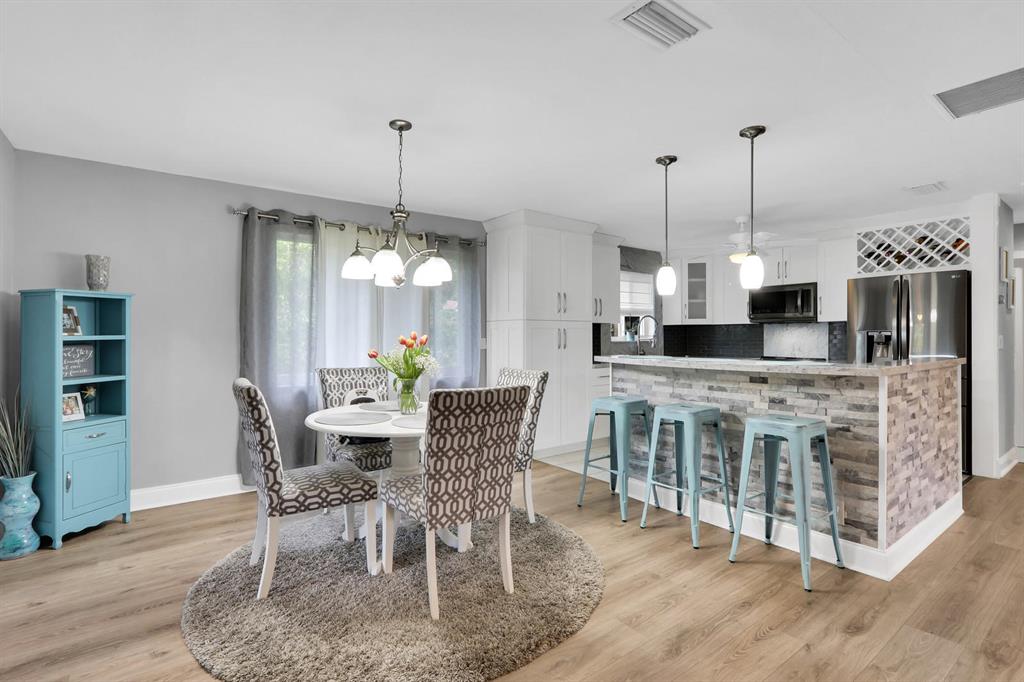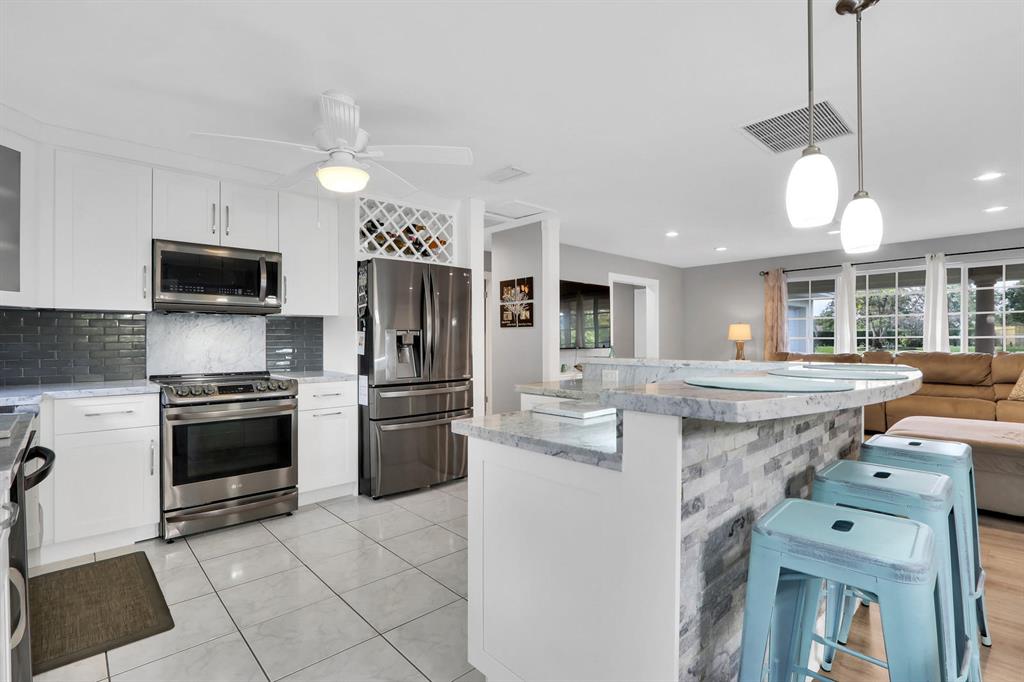 Impeccably well-kept 3 bedroom, 2 bathroom home in the oh-so likable Lake Clarke Shores neighborhood. The front exterior of the home has an impressive entrance containing a circular driveway that leads to 2 single garage doors. This airy home offers an open floor plan with split bedroom layout and has been tastefully updated with modern laminate wood look floors in the living & dining areas, a new guest bathroom, and a stunning kitchen boasting white cabinets, marble countertops, tile backsplash, stainless steel appliances, and an oversized eat-in stone island. Some of the additional upgrades you'll enjoy include, freshly painted interior, LED lighting throughout, impact windows, and a spacious den with French door entry that could be used as an office space or 4th bedroom.