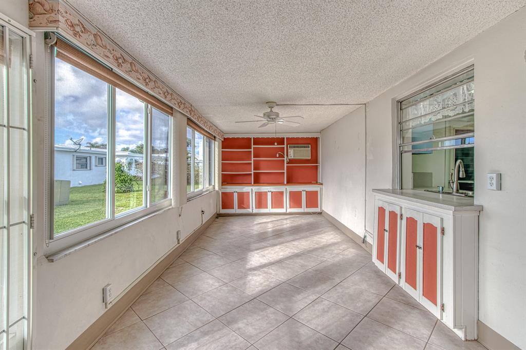 This beautiful and spacious 2 bedroom, 1 full bath home with hurricane impact windows sits on a quiet street in lovely Leisureville, (55+ Community). Attractive paver driveway. Newer washer/dryer. Low maintenance fee includes lawn, water, sewer, painting house and roof. Community amenities include 2 heated pools, 2 clubhouses, 9-Hole/Par 3 golf, community bus. No Land Lease.