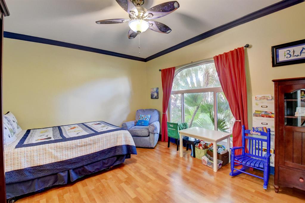 This spacious 6 bedroom, 7.5 bath, 3 car garage pool home with great outdoor living on the 5th hole of Boca Grove's Jim Fazio designed golf course - Great lot, Lots of space, Culdesac Street, Great Community. Don't miss this opportunity to make this space your own. Enter into 5,632 sf under air with Jerusalem Marble floors. Lots of space for family & entertaining. All 6 bedrooms are en-suite with built in closets. Elevator to upstairs. The master suite has a huge built-in closet, covered balcony & a real wood fireplace (1 of 2). Outside, enjoy an updated (2016) pool with a golf view, cabana bath, & 2 covered patios. Watch the sunrise & set from the pool. $75,000 roof installed 2014. Windows are hurricane protected, partially impact. Incredible new Sports & Wellness Complex coming 2021.