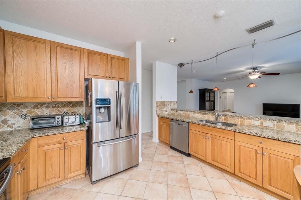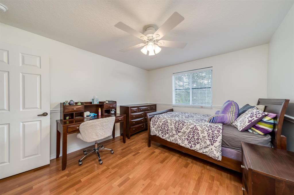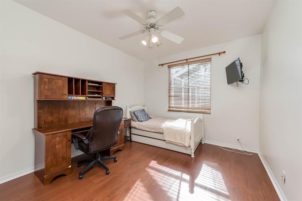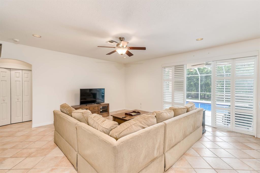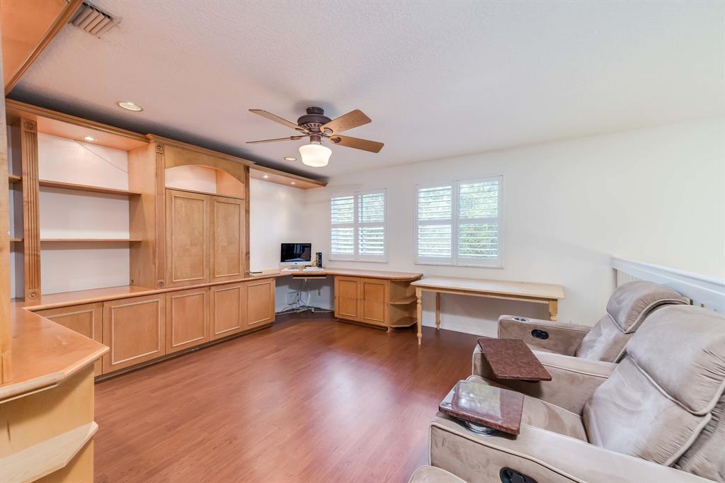 Gorgeous and meticulously kept 4BR 3BA home, with an open modern floor plan in the highly sought after gated community of The Ridges. Natural sunlight floods the home with soaring ceilings and oversized windows. This freshly painted home has boundless upgrades. The Chef's Kitchen is appointed with beautiful 42'' wood cabinets and top of the line stainless appliances. There is a large granite topped breakfast bar plus custom tumbled marble backsplash and wall accents. The eat-in kitchen is complimented with Plantation shutters that carry out to the family room. The large patio and spa are screened in. Custom laminate plank like floors are on the stairs and throughout the 2nd floor. Crown moldings compliment the guest rooms. 3 BR's with loft upstairs and one bedroom/office downstairs.