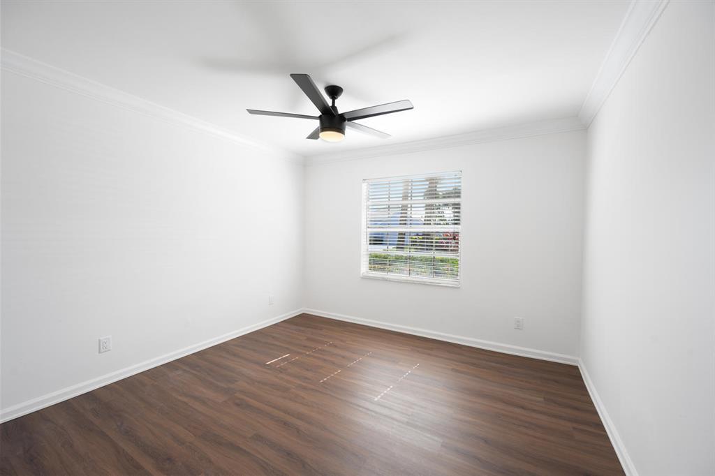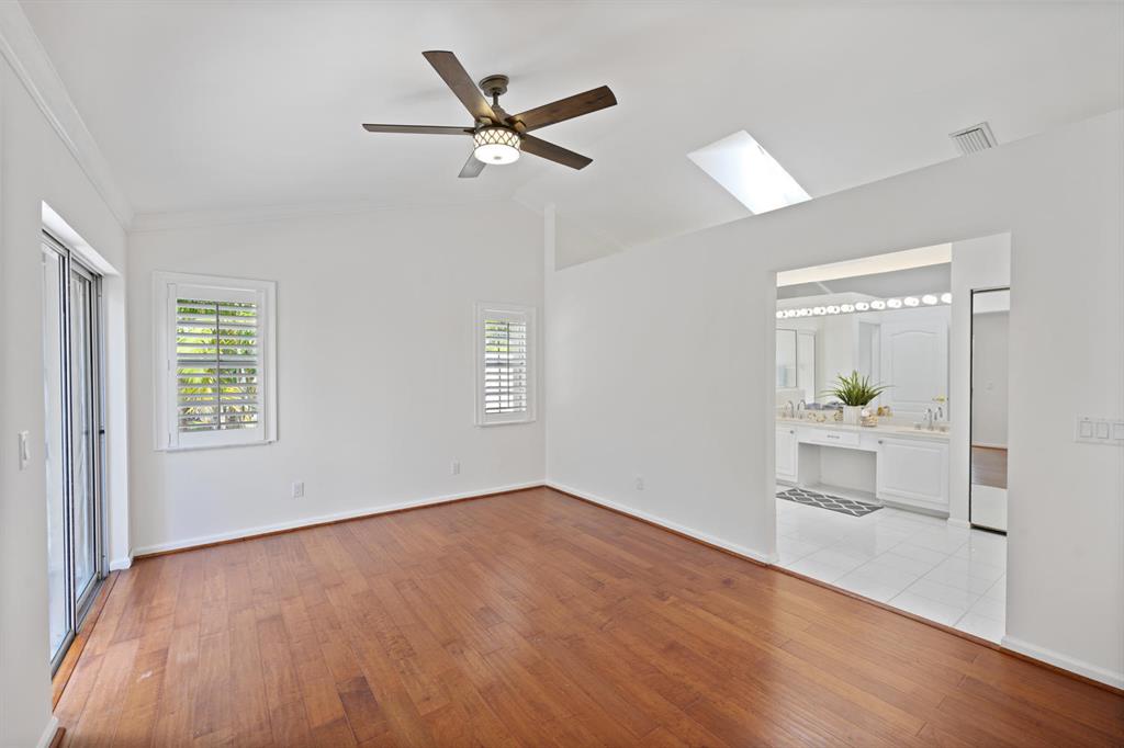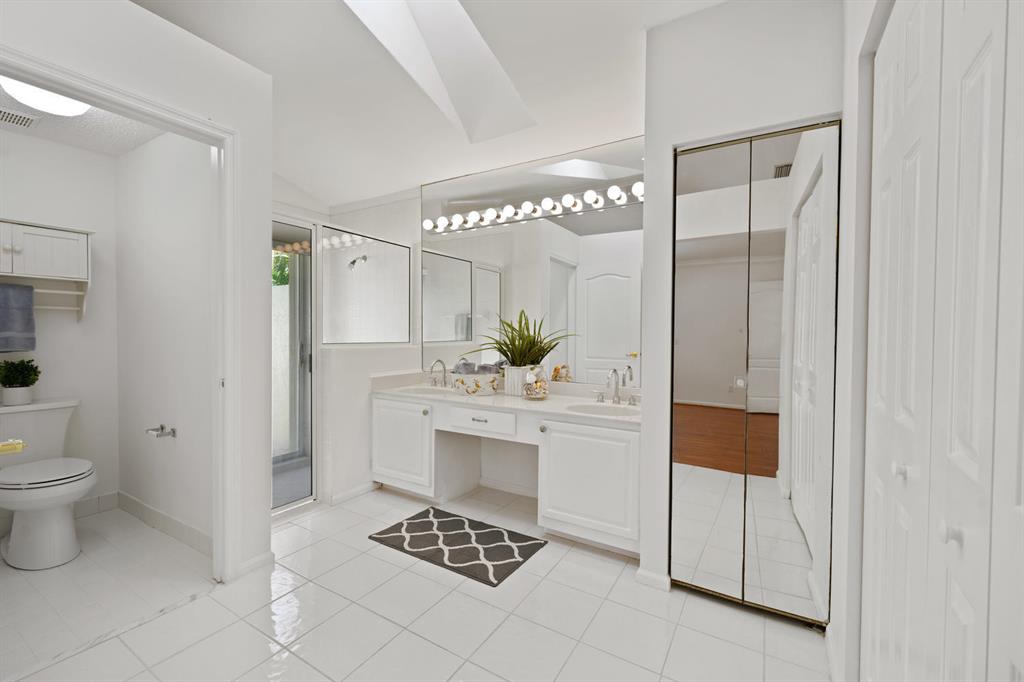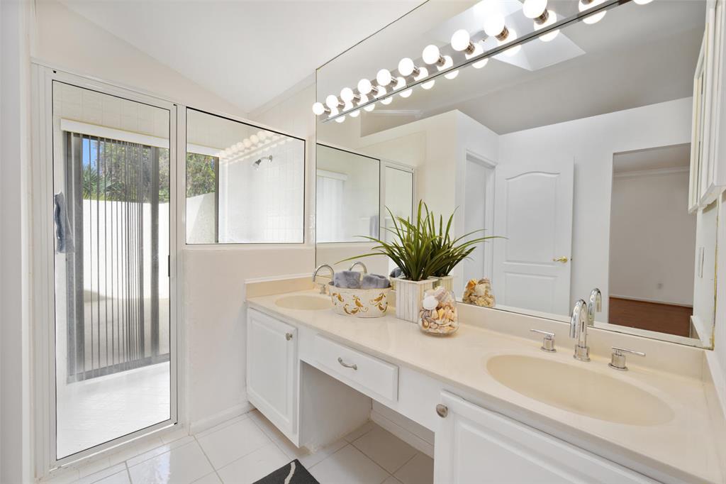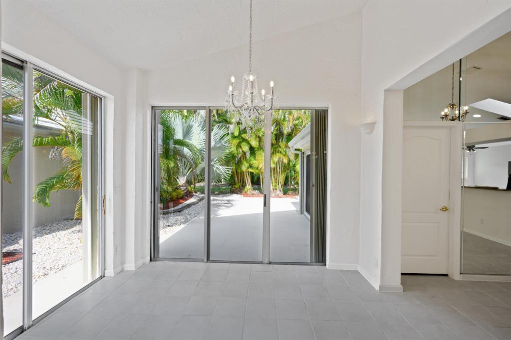 Charming 3 BR, 2 BA home in beautiful BREAKERS WEST! This property is not occupied and can be safely shown virtually or alone in person. Located along golf course, the patio with tropical landscaping is perfect spot for enjoying peace and quiet. Spacious Great Room/Dining Room has vaulted ceilings & lots of natural light. Open Kitchen has granite counters and NEW stainless steel appliances. Freshly painted interior with smooth ceilings & crown molding thru out. Master Suite has vaulted ceilings, wood floors, large walk-in closet & dual sinks. Guest Bedrooms have NEW flooring and one has ensuite bath. Accordion shutters for hurricane protection.