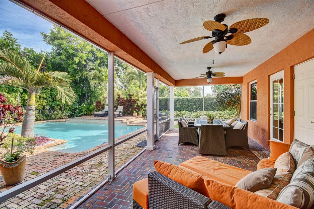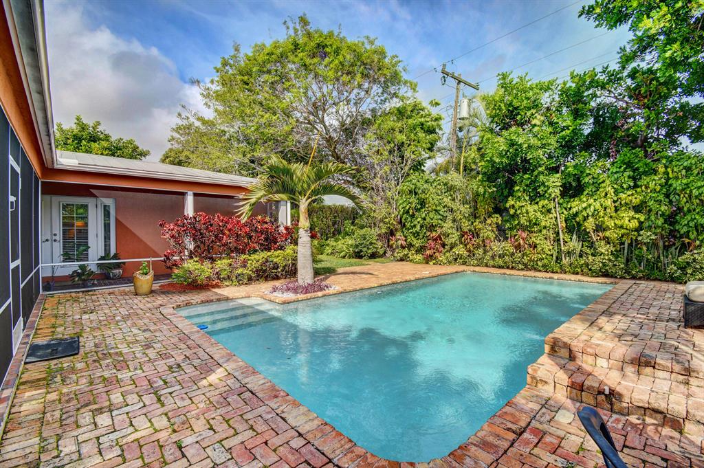 Beautiful new listing in desirable ''SoSo'' area of WPB.This home has 3 en-Suite bedrooms plus Den & family room, heated pool, circular drive and 1 car garage. Open floor plan.Pool views from master, 2nd bedroom , family room and screened porch. This is a complete tropical oasis.Pool has custom LED lighting that can change colors & additional water features.Gas hot water tankless heater & gas stove, large kitchen, counter bar and spa like master bath.All impact glass with exception of the main front door & cabana bath door which have panels. Metal roof & CBS construction.Located east of Olive, a short distance to the intracoastal & S Flagler Dr. Just blocks from South Olive Elementary.EXCLUSIONS: Dining room chandelier, draperies & rods