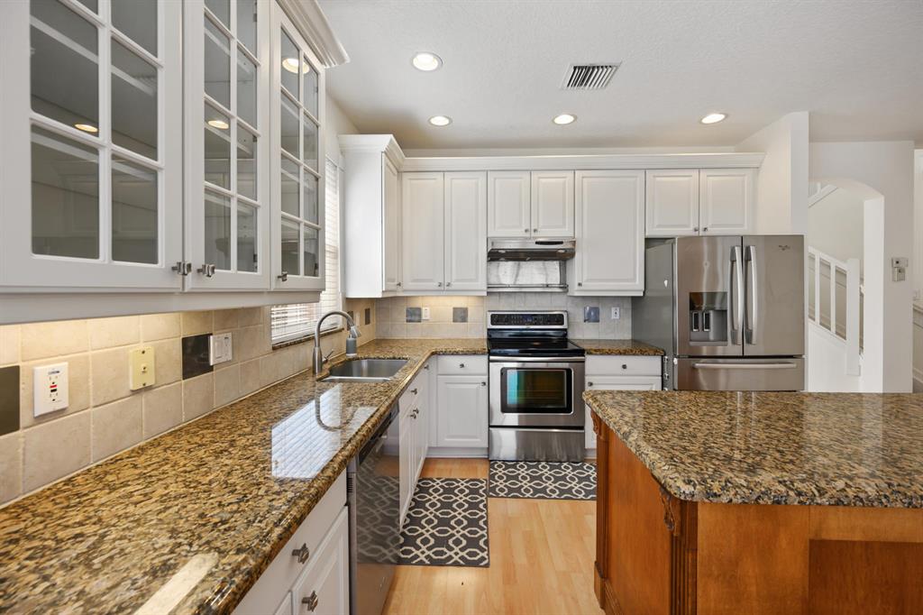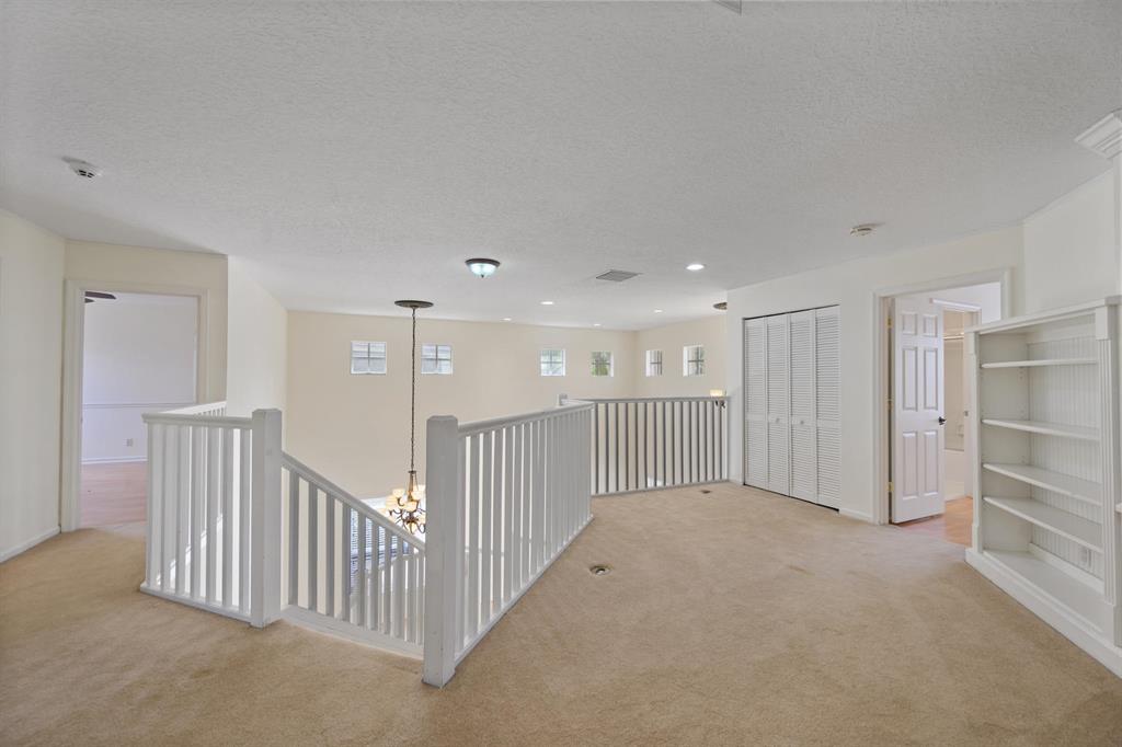 Spacious gated community home in great school district!!Dramatic soaring ceilings greet you upon entering this family friendly floor plan. Additional living room with upgraded open kitchen concept look out to the private pool and lake beyond creating a light and private view for all.Master bedroom downstairs for added convenience and ease of living. Upstairs 3 bedroom and a large loft make this house perfect for guests or families to enjoy.Will not last long!! Call or text to arrange a showing.