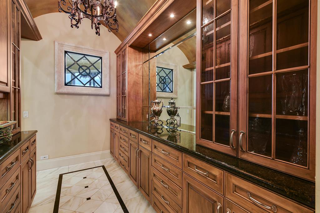 Prepare to be captivated the moment you drive into the cul-de-sac and are welcomed by this impressive Mediterranean home with 280 degree panoramic lakefront views and golf course views in the exclusive community of St. Andrews Country Club. This refined European-inspired masterpiece is situated on a spectacular .86 acre trophy lot. A graceful entry sets the timeless tone of this 5 bedroom, 7.1 bath residence with 7,601 square feet under air. The classic look is fashioned with custom architectural elements, exquisite designer finishes, marble floors and stunning ceiling treatments throughout. The flow functions beautifully for entertaining with French doors to the outdoor living area and private pool and spa in a relaxing resort-like oasis surrounded by huge palms, trees, grass, and lush