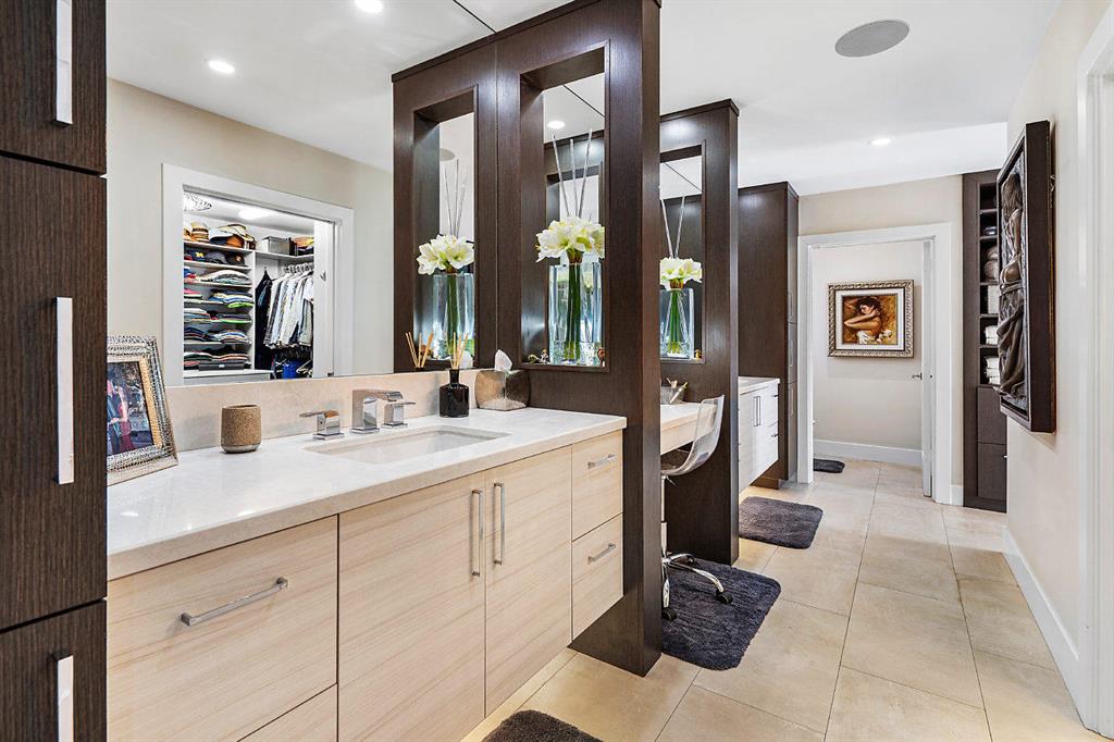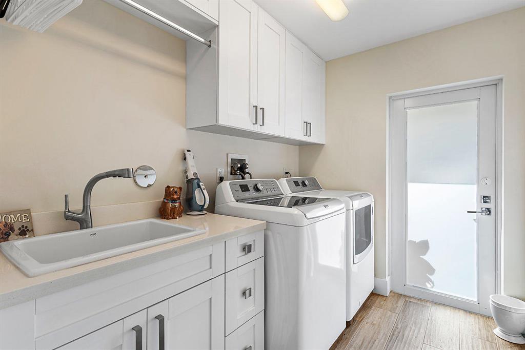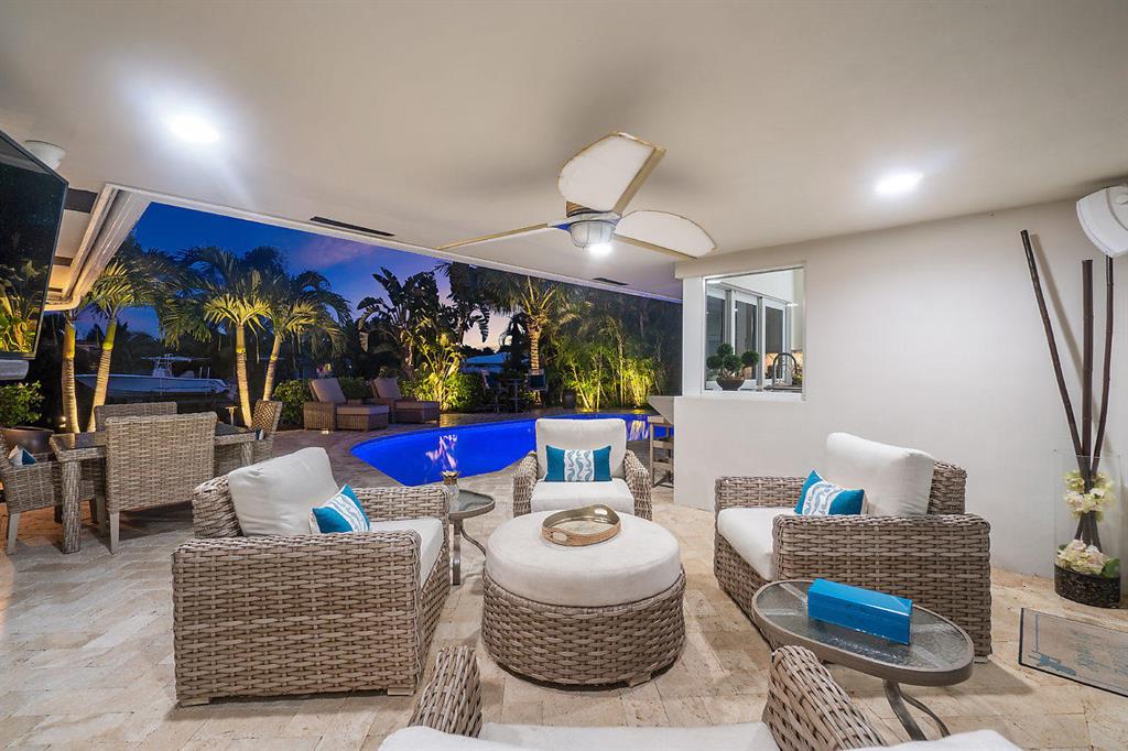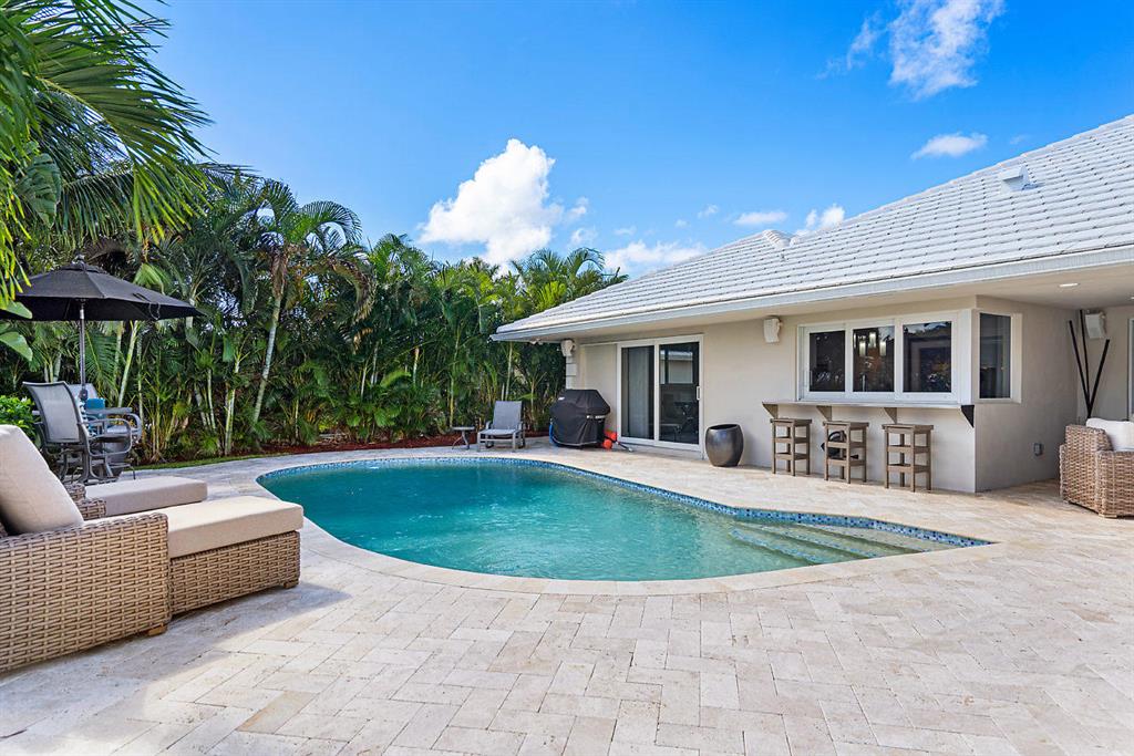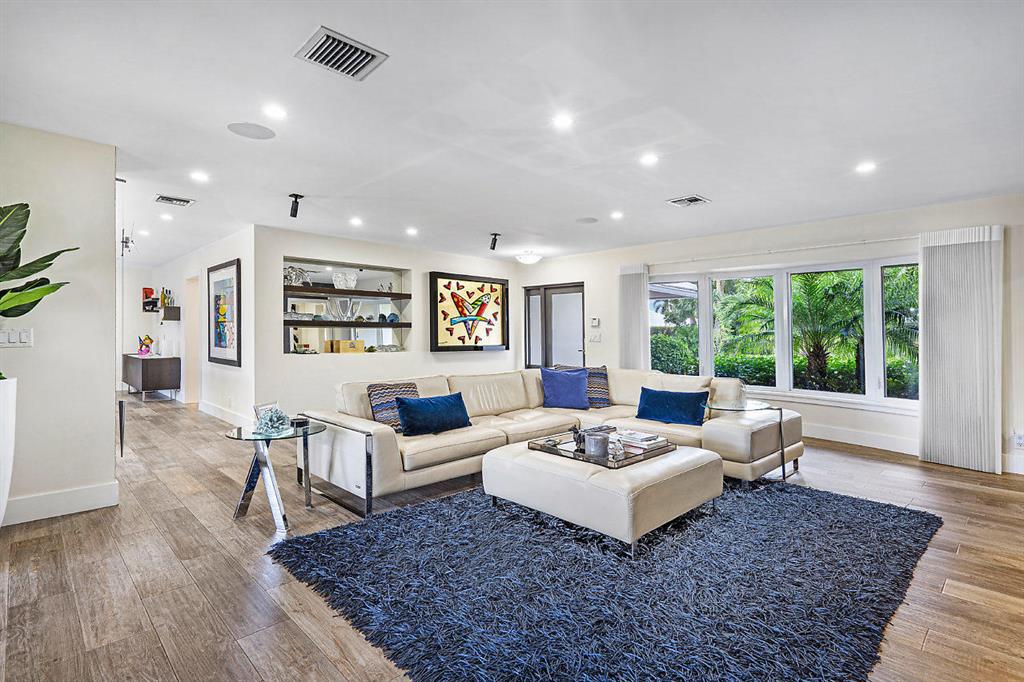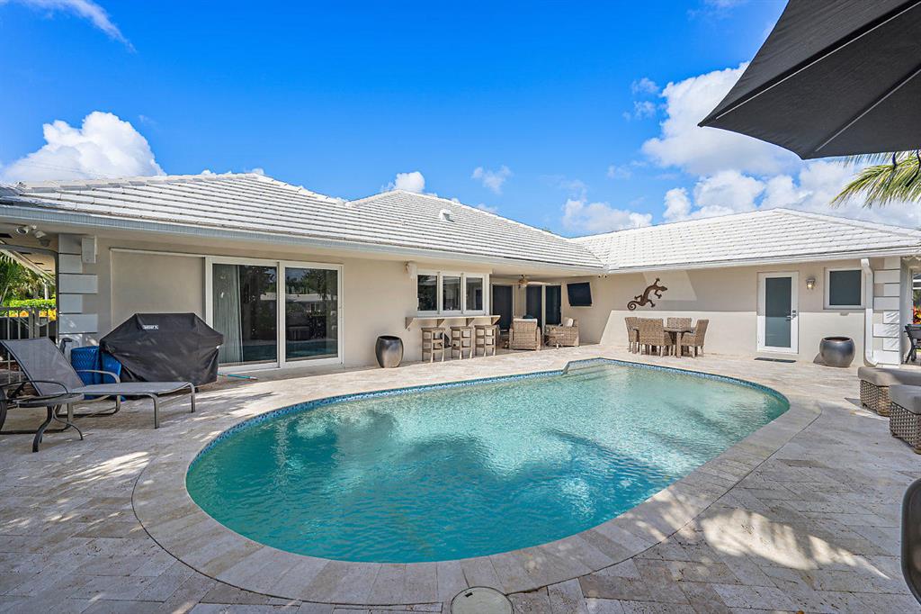 Situated on the most desired canal with ocean access in Camino Gardens, this spectacular home has been modernized throughout with rich finishes and amenities. This waterfront beauty is perfectly sized and features Thermador kitchen appliances with 6 burner gas stove, oversized center island with extra prep sink and white quartz countertops. The owner's suite is FIERCE with a large custom walk-in closet with island, spa bath has floating vanities, accent lighting, big shower with huge rainhead and Jerusalem tile flooring. The rest of the home has wide planked wood-look porcelain tile flooring for a modern coastal vibe. Immerse yourself in sound from the recessed Bose speaker system indoors and out. Enjoy the heated salt pool, LED landscape lights and private dock with electric & water...