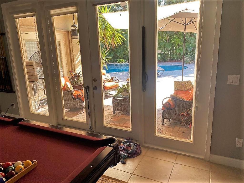 Westport Beauty- Light, bright open floor plan, with vaulted ceilings. Move-in ready. Recently updated bathrooms, real wood flooring in all bedrooms, and ceramic tile throughout. Large master bedroom with his/hers custom walk-in closets. Huge open kitchen with tons of cabinet space and updated stainless steel appliances. Circular paved driveway and pool deck. Private tropical oversized backyard and pool area with lush landscaping. Perfect for entertaining. Accordion hurricane shutters. Centrally located. Fish tank not included, but negotiable.