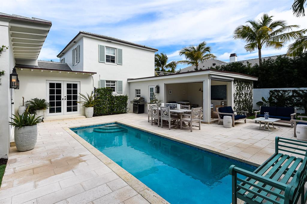 This beautiful north-end home has been completely renovated with top-of-the-line finishes and an improved floor plan. The residence has 2,775 total square feet with 4 bedrooms and 4 full baths. The living room features a new vaulted ceiling with a venetian plaster finish, ipea beams, and a custom built-in cabinet with wine, ice and refrigerator drawers. Natural light fills the space through the large windows with views of the garden. The newly appointed kitchen has a Sub Zero refrigerator, a Bosch stove top and oven, a Bosch dishwasher, wine fridge, filtered water tap and ample storage. The newly renovated pool includes a fountain feature, new tile, lighting and high flow heater. The cabana is perfect for lounging poolside with drop down screens, a mini-fridge, and a