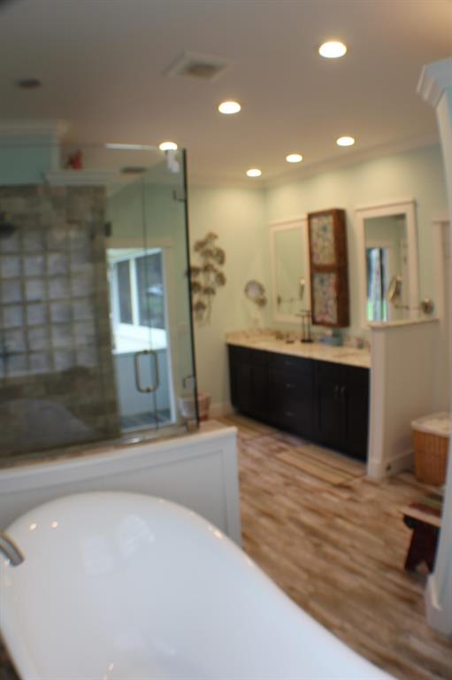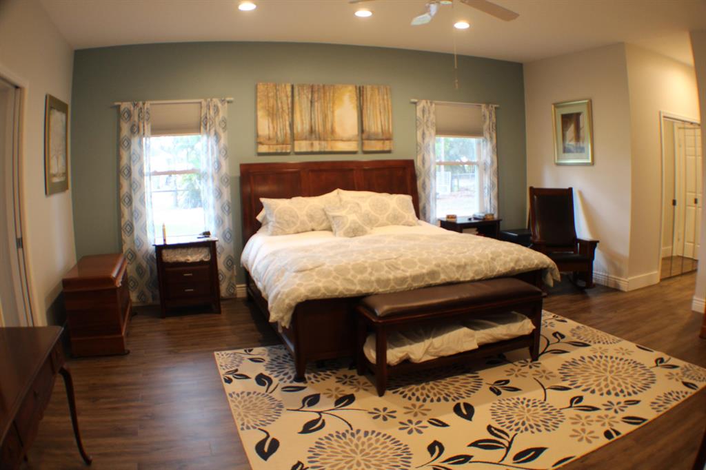 PRICE REDUCTION!!! This beautiful spacious. home offers a huge master suite with 2 very large walk in closets and a remodeled master bathroom with a claw tub, granite vanity with 2 sinks and a city stamped unique tile in the shower. All new viny laminate flooring in the bedrooms and new ceiling fans, both guest bathrooms fully remodeled. Featuring a large open kitchen with maple cabinets and a large panty. Recessed lighting in the kitchen, enterainment room, family room as well as the master bedroom.. This beautiful home is hurricane ready with Impact window,s full house generator hookup and a 5 yr old roof. Detached 30 x 40' Steel building with electric. Please see a full list of improvements attached. Recent appraisal.Sellers are leaving for the buyer numberous items on the list.