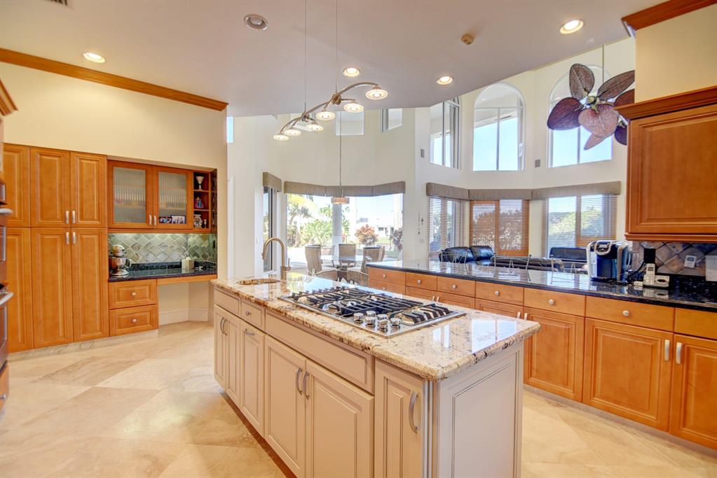 This 6 bedrooms two story residence has exceptional water and golf course vistas. A main entry foyer opens to a two story living room with dramatic floor to ceiling glass, full dining area and entertainment bar, all overlooking the pool, patio and spa. The spacious first floor master suite and bath area, along with a library/office occupy one wing. An open kitchen with center island, serves the dinette and two story family room with overlooks the pool patio and magnificent water views. There are two additional first first floor bedrooms that share a full bath. An upstairs entertainment loft overlooks the living and family rooms below, and has three additional bedrooms suites. The home has exceptional storage and a three car garage. A full membership to St Andrews CC is required.