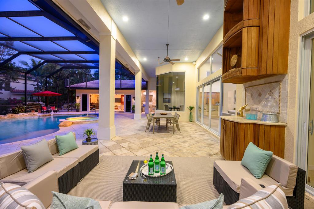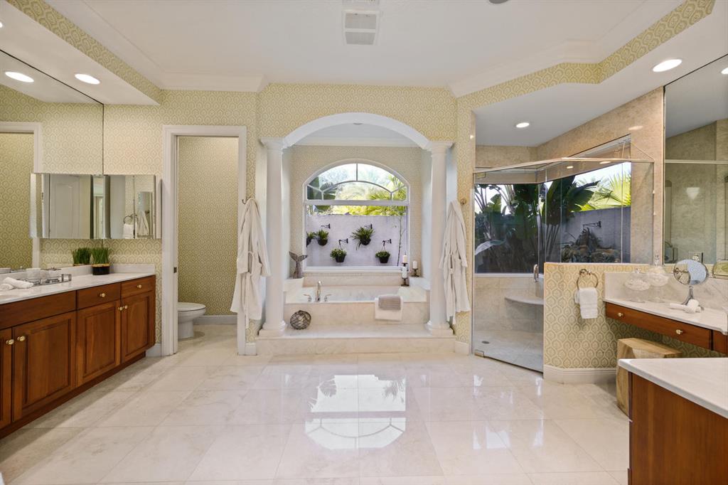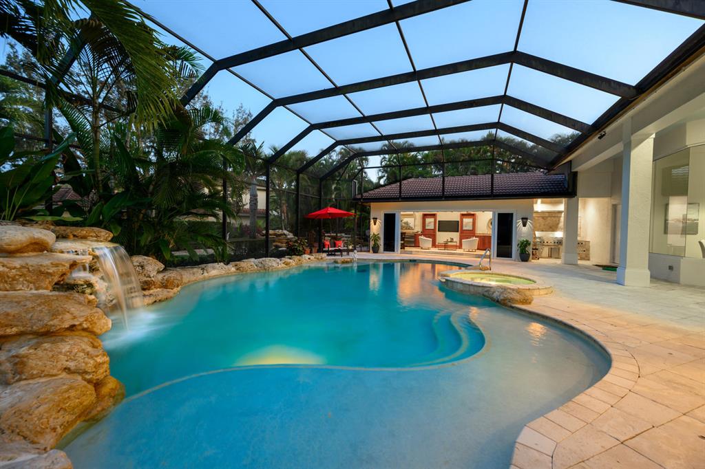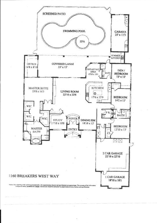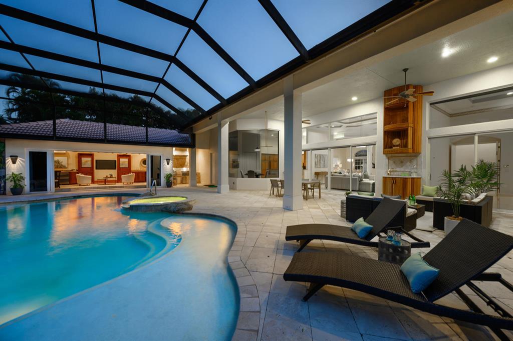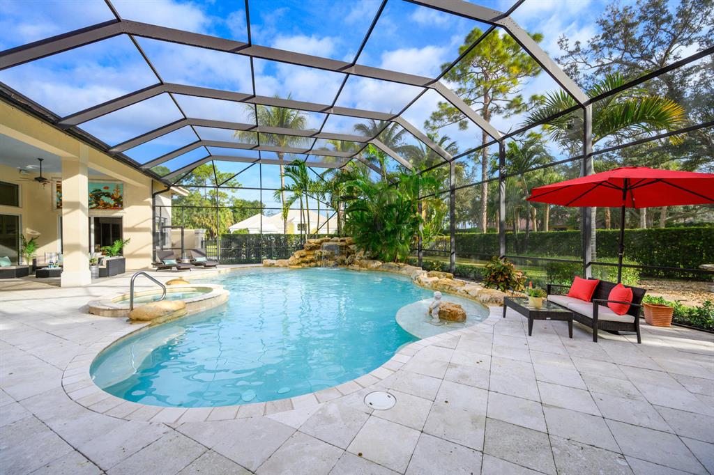 This Breakers West home is like having your own tropical resort and ideal for enjoying the outdoor living and entertaining. When you step inside, you are immediately welcomed into the Great Room w/marble floors & sliding doors opening to the expansive covered loggia with resort-style pool with waterfall. Enjoy entertaining guests or family of all ages with A/C Cabana room/bar area & outdoor grill. Grand Master Suite has adjoining sitting room/office with built-in desk overlooking the pool, His & Her walk- in closets and soaking tub w/separate shower. Beautiful chef's kitchen equipped with Full-size SubZero refrig & full-size freezer, vented cooktop, double ovens, wine cooler, and 2 Sub-Z refrig drawers.Bonus room- 3rd bay of garage has been closed for gym or storage room OR could
