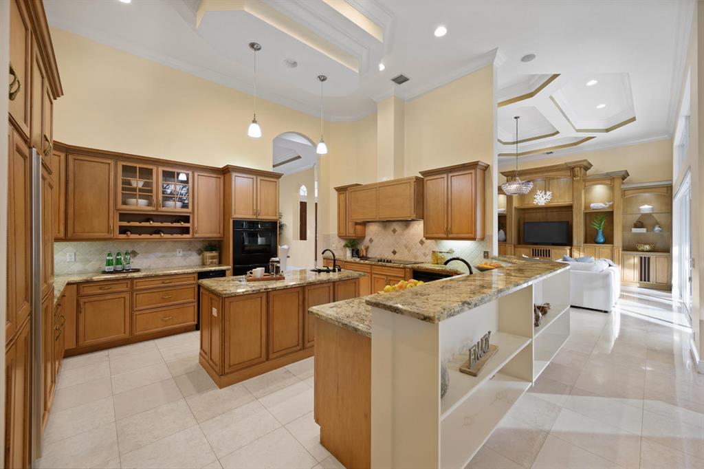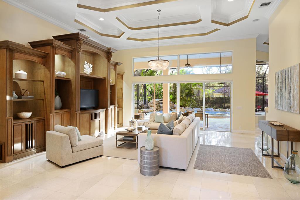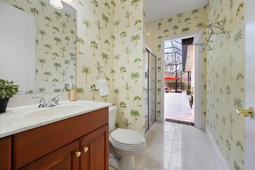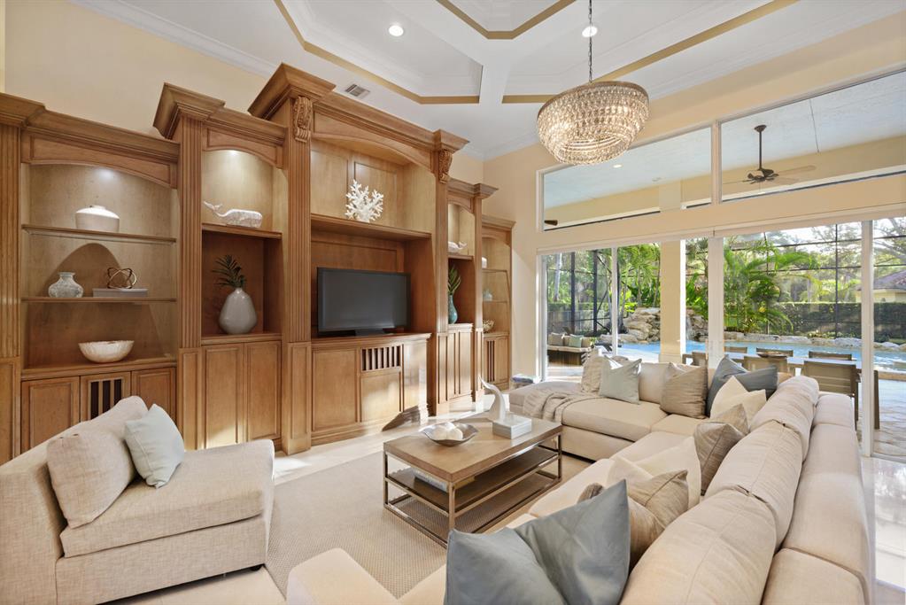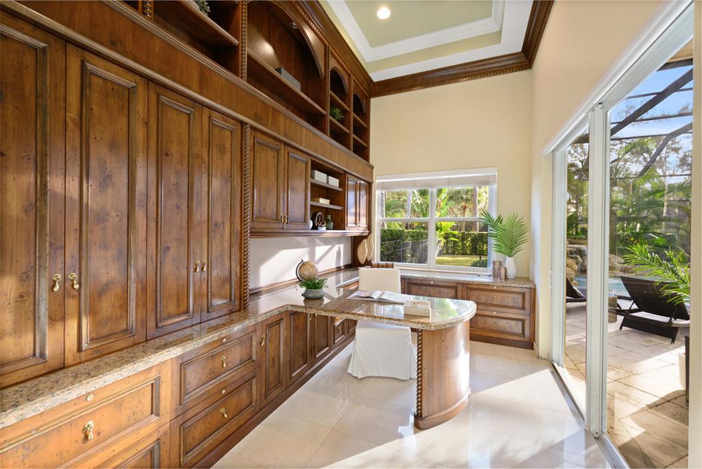 This Breakers West home is like having your own tropical resort and ideal for enjoying the outdoor living and entertaining. When you step inside, you are immediately welcomed into the Great Room w/marble floors & sliding doors opening to the expansive covered loggia with resort-style pool with waterfall. Enjoy entertaining guests or family of all ages with A/C Cabana room/bar area & outdoor grill. Grand Master Suite has adjoining sitting room/office with built-in desk overlooking the pool, His & Her walk- in closets and soaking tub w/separate shower. Beautiful chef's kitchen equipped with Full-size SubZero refrig & full-size freezer, vented cooktop, double ovens, wine cooler, and 2 Sub-Z refrig drawers.Bonus room- 3rd bay of garage has been closed for gym or storage room OR could
