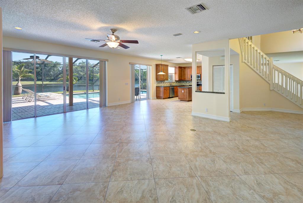 Magnificent 2 story 5 bed, 3 bath 2 car garage pool home with amazing lake views. Updated kitchen with granite countertops and stainless steel appliances. Low HOA. Hurricane accordion shutters on all windows/doors. HUGE outdoor screened-in patio with large pool overlooking a beautiful serene lake. It's perfect for entertaining, or just quality family time. At just shy of 3,400 square feet, this home has space for the whole family. The layout is convenient, and feels open and spacious. The first floor is perfectly balanced with the formal living room and formal dining room on one side, and updated kitchen overlooking the huge family room and second dining area on the other side.