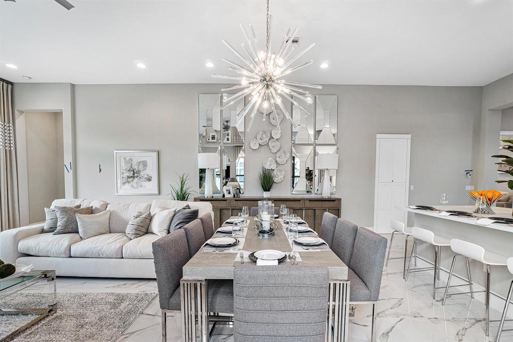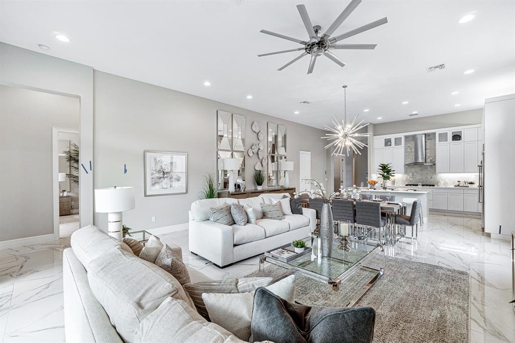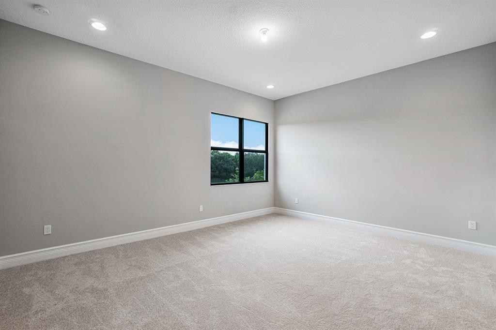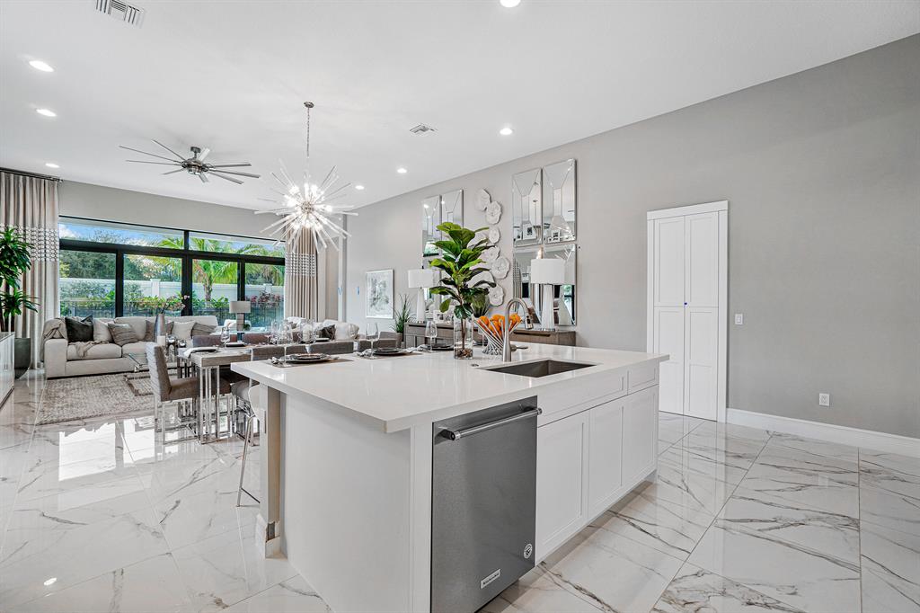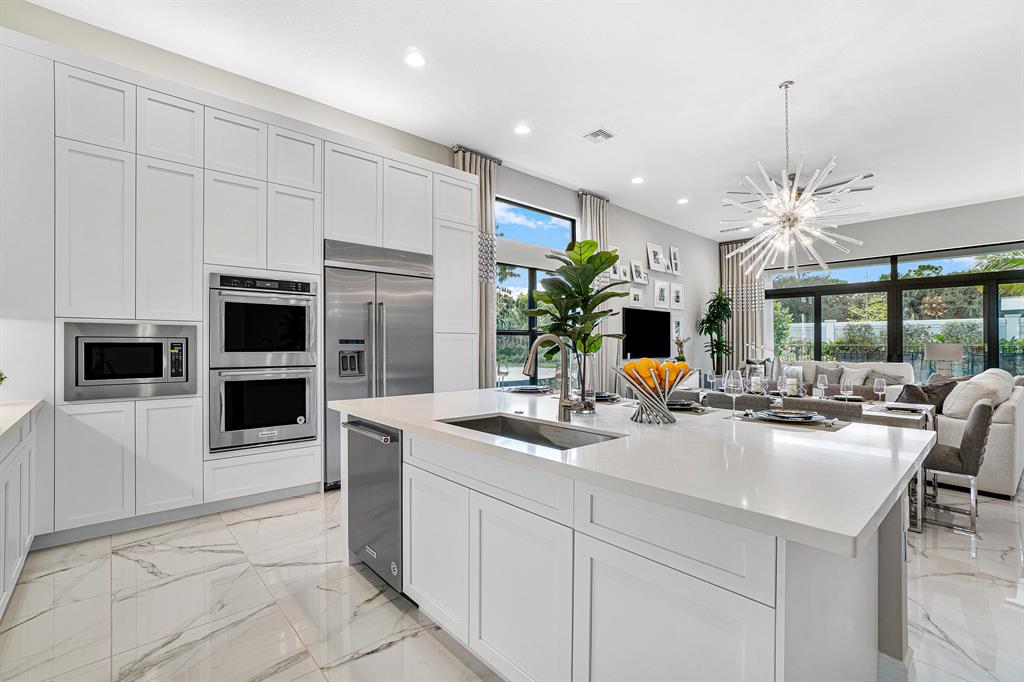Stunning home in Boca Bridges that includes beautiful free furnishings. This brand-new, contemporary Adriana model offers an abundance of space with modern finishes. The gourmet Kitchen includes beautiful 42'' shaker arctic white painted maple cabinets with upgraded enhancement package including upper and lower cabinet lighting, pot and pan drawers, upgraded quartz countertops with full backsplash, and an upgraded single bowl stainless steel sink. All appliances are stainless steel including a Kitchen Aid 42'' built-in side by side refrigerator, built-in 30'' double oven, built-in microwave, 36'' five burner gas cooktop, 36'' chimney hood vented to exterior and dishwasher. The game room on the main level offers a secondary living space in addition to the spacious great room.
