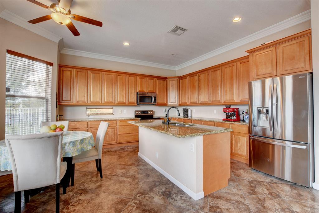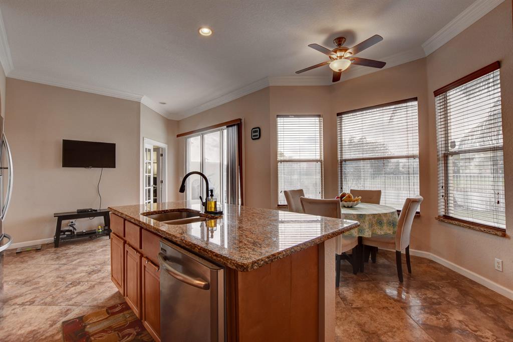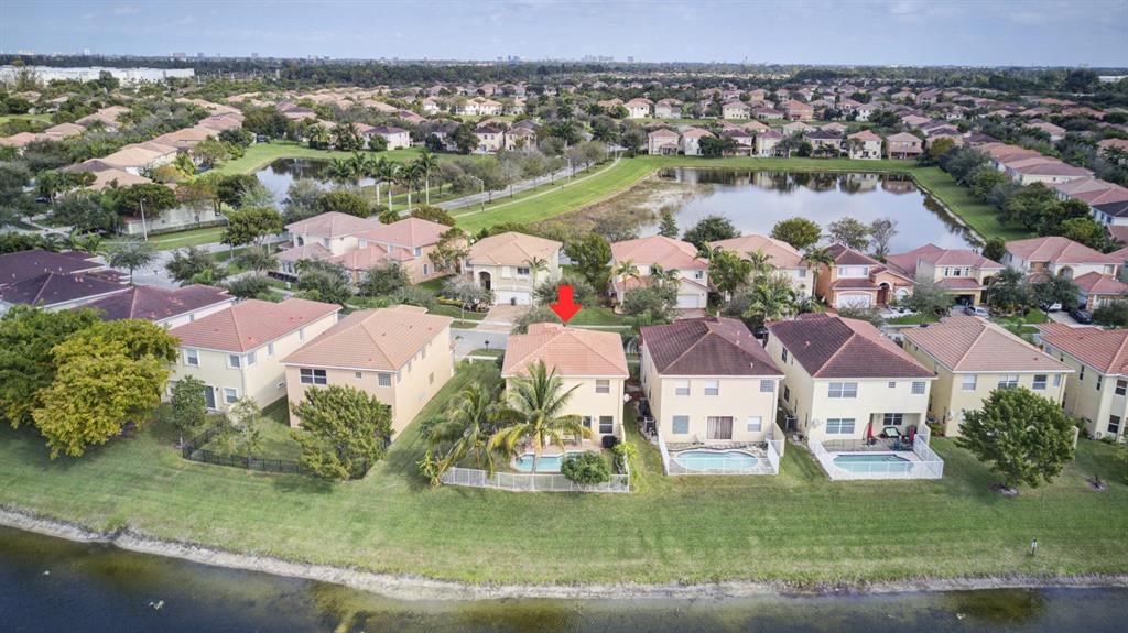 Great location overlooking large lake, inground private pool, fenced yard, nicely redone w/ new granite counters and upgraded cabinetry, fresh paint, new bath vanities and fixtures, new stainless steel range and dishwasher, fans, light fixtures and blinds. New A/C as of Jan 2020! Oversized master bedroom upstairs, den/office and half bath on first level. Indoor laundry/utility room. Association fee includes manned guard gate, terrific clubhouse and lawn care. Community features include a resort-style heated swimming pool, children's water feature, tot lot, BBQ area and more!