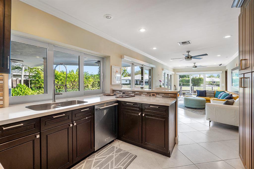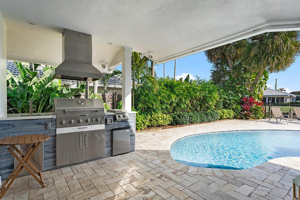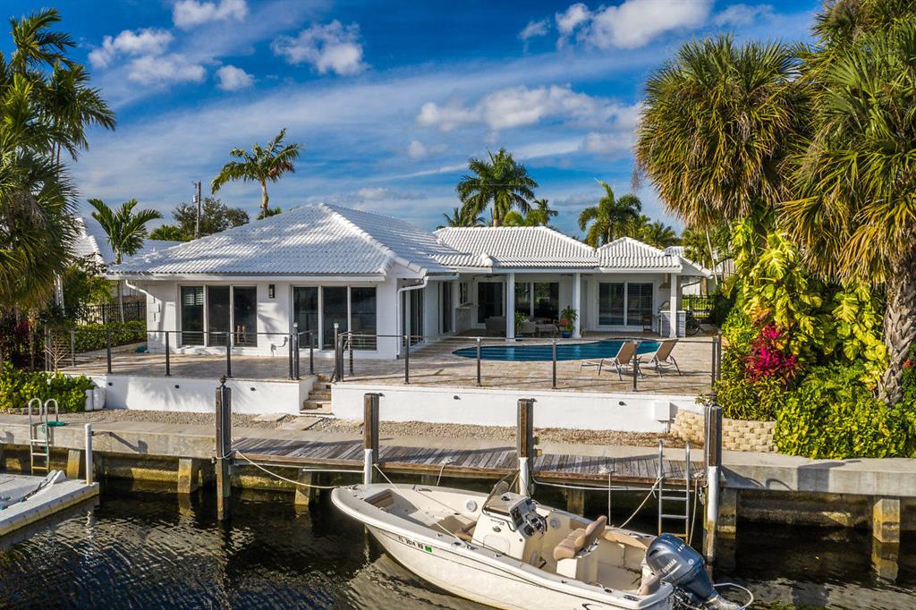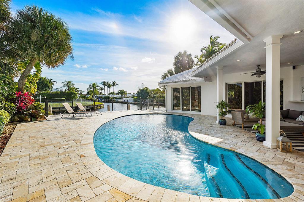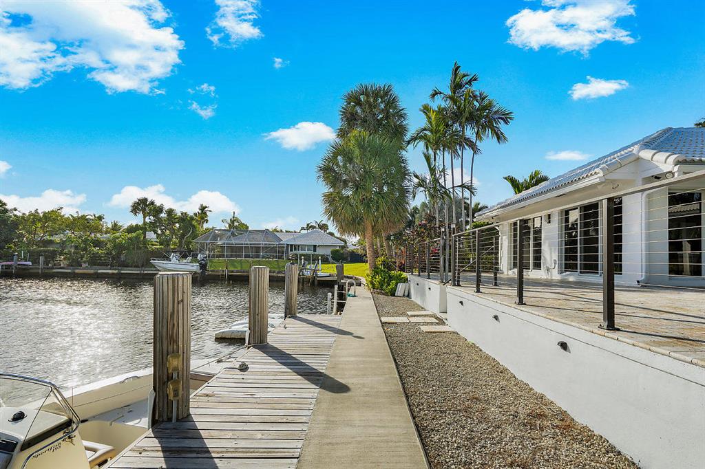 BRING YOUR BOAT! This delightful waterfront home with ocean access in Camino Gardens features a newer seawall, 30ft boat dock with electric, water and a double jetski dock. You will enjoy tranquil water views from almost every room. Relax by the deep blue sparkling pool and enjoy entertaining on the grand open air patio with built-in summer kitchen. Inside the home you will find living spaces filled with natural light and luxurious modern light fixtures. Display your favorite bottles of wine in the large built-in wine cooler. The modern kitchen features white quartz countertops, stainless steel appliances and rich cabinetry. This fabulous home has impact windows, a newer roof and is located on a quiet street in one of the most desirable neighborhoods in east Boca.