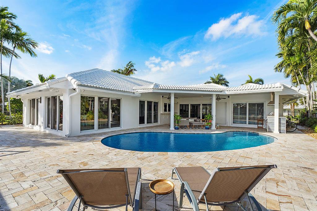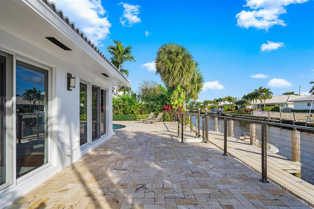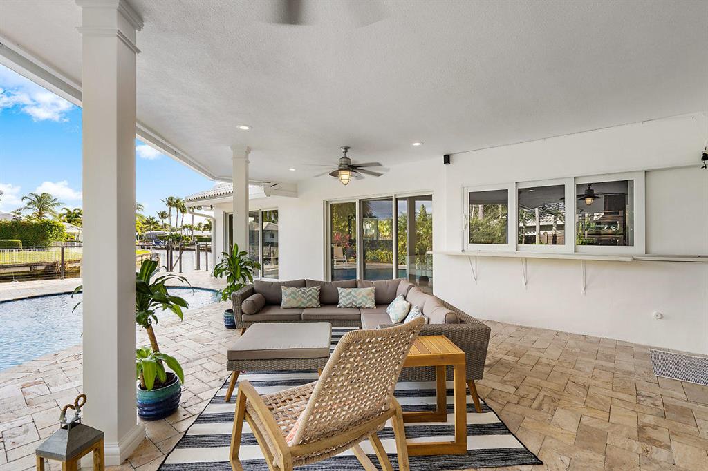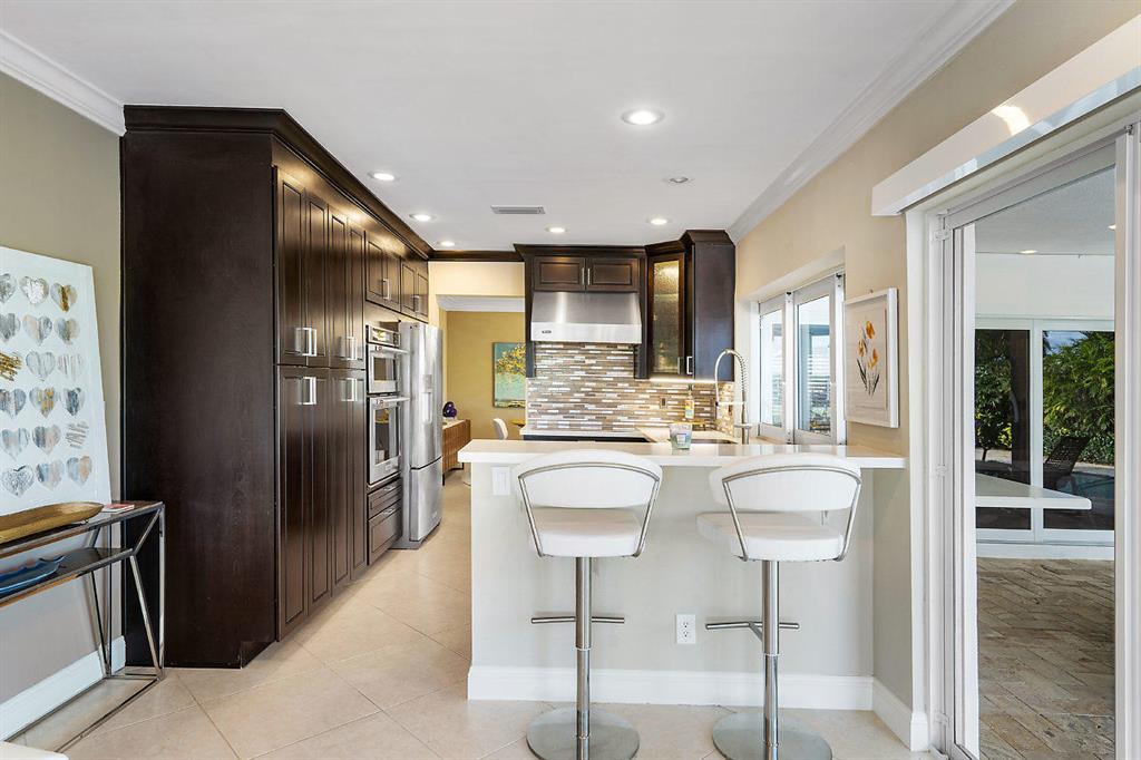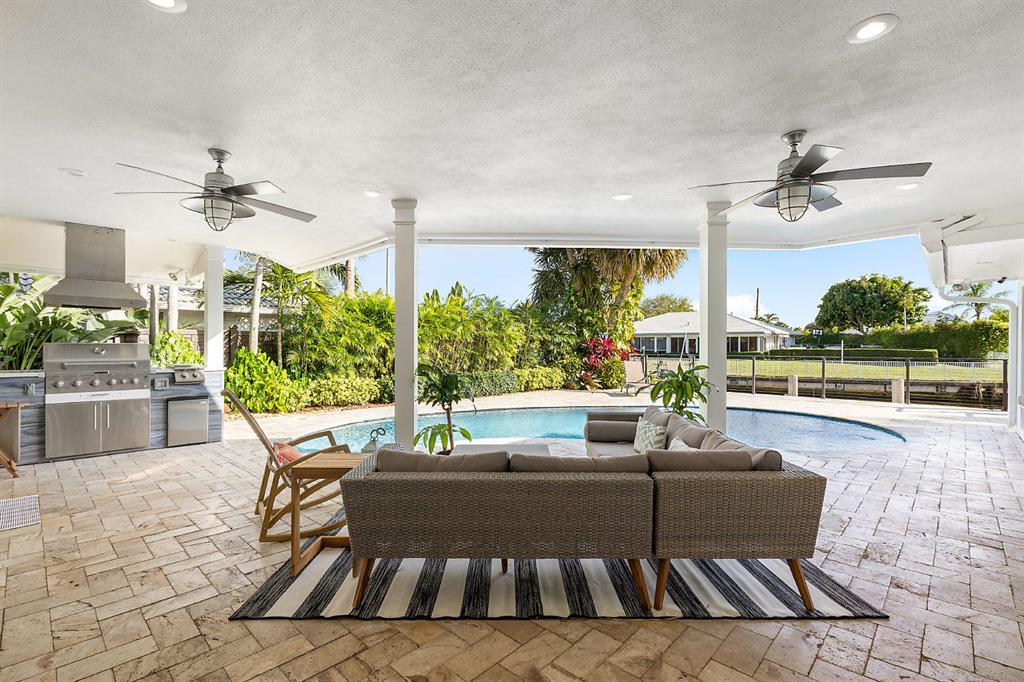 BRING YOUR BOAT! This delightful waterfront home with ocean access in Camino Gardens features a newer seawall, 30ft boat dock with electric, water and a double jetski dock. You will enjoy tranquil water views from almost every room. Relax by the deep blue sparkling pool and enjoy entertaining on the grand open air patio with built-in summer kitchen. Inside the home you will find living spaces filled with natural light and luxurious modern light fixtures. Display your favorite bottles of wine in the large built-in wine cooler. The modern kitchen features white quartz countertops, stainless steel appliances and rich cabinetry. This fabulous home has impact windows, a newer roof and is located on a quiet street in one of the most desirable neighborhoods in east Boca.