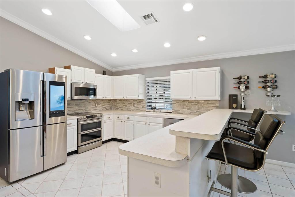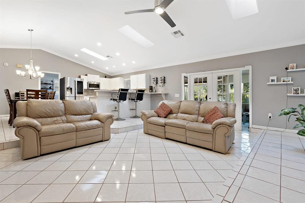 Check out this 4 bedroom, 2 bathroom home in The Acreage! A large screened-in front porch and double entry doors welcome you in. The main living area features a fireplace, tile floors and vaulted ceilings with skylights that fill the open concept living area with natural light. The kitchen has been upgraded with high-end appliances and is open to the dining room and living room. The Master Bedroom has a walk-in closet and brand new bathroom. s well as the new modern 2nd bathroom. Enjoy Florida weather on the 1.25 acres that is fully fenced with automatic gate, irrigation system, fruit trees, a large deck & gazebo. Roof 2005, tankless water heater- 2018, appliances -2020. BRAND NEW AC.