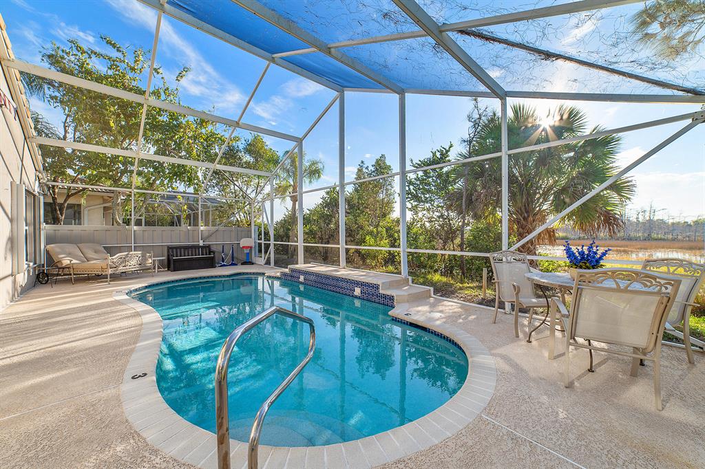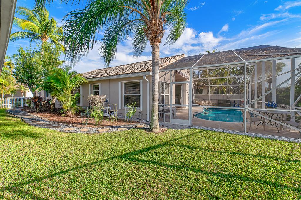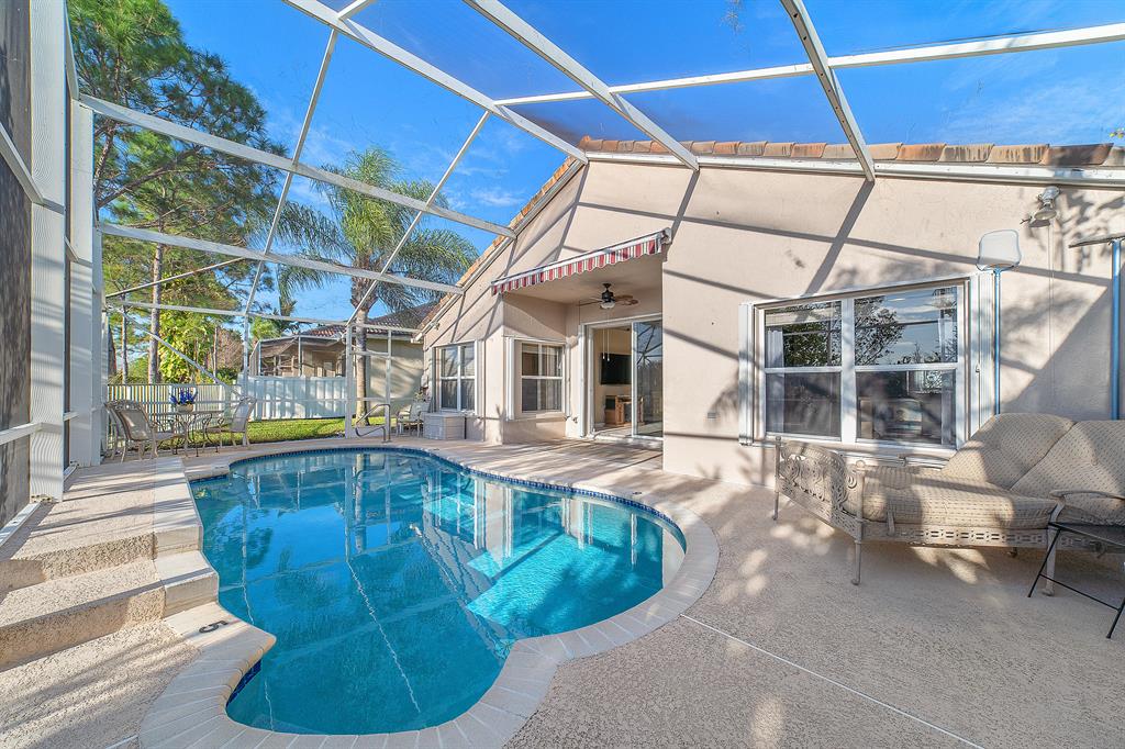 CHARMING, BRIGHT 3/2/2 HOME WITH SALTED POOL 27 X 11, ON THE NATURAL PRESERVE, LARGE SCREENED PATIO, KITCHEN WITH BREAKFAST AREA LOOKING AT THE POOL & PRESERVE STAINLESS STEEL APPLIANCES, GRANITE COUNTER TOP,LIVING ROOM WITH VIEW POOL & PRESERVE, LARGE MASTER BEDROOM SUITE WITH VIEW ON THE POOL & PRESERVE, WALKING CLOSET, MASTER BATHROOM. 2 GUEST BEDROOMS WITH A FULL BATHROOM. ACCORDIONS SHUTTERS. LOW HOA INCLUDED : 24/H GATED COMMUNITY, CABLE, INTERNET, ALARM, LANDSCAPING, 10,000 SQ FT CLUB HOUSE, FITNESS, POOL, BABY POOL, JACUZZI, SAUNA, BALLROOM, 2 POOL TABLES, CARDS ROOM, 6 TENNIS COURTS, BOCCE BALL, BASKETBALL. CLOSE TO EVERYTHING, TURNPIKE, I.95, SHOPPING, RESTAURANTS, THEATER, POLO CLUB, GOLF COURSES, 12 MINUTES AIRPORT, DOWNTOWN, BEACHES. SELLERS MOVING OUT OF STATE
